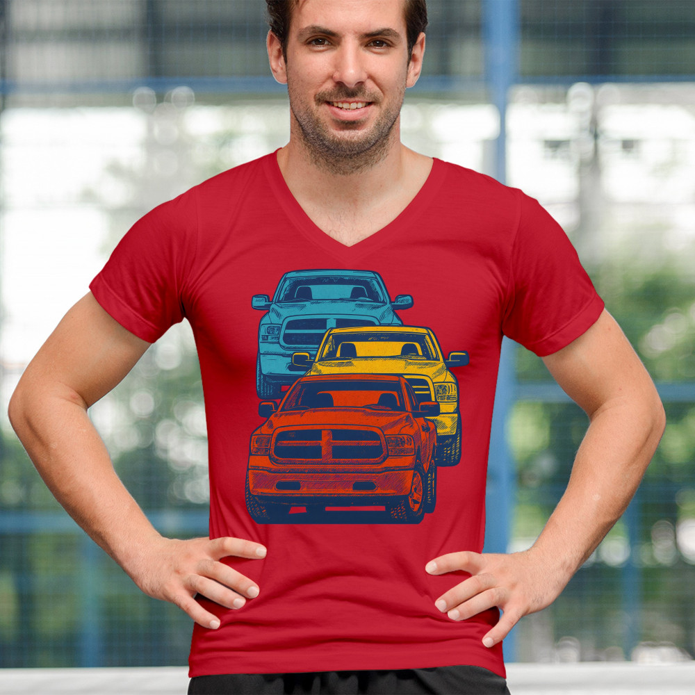 Boldly stacked and powerfully styled, this multicolor truck design showcases red, yellow, and blue pickups in a vertical formation. Made for fans of lifted truck culture, horsepower, and off-road pride, it celebrates diesel grit, road attitude, and the spirit of truck meets and gearhead unity.