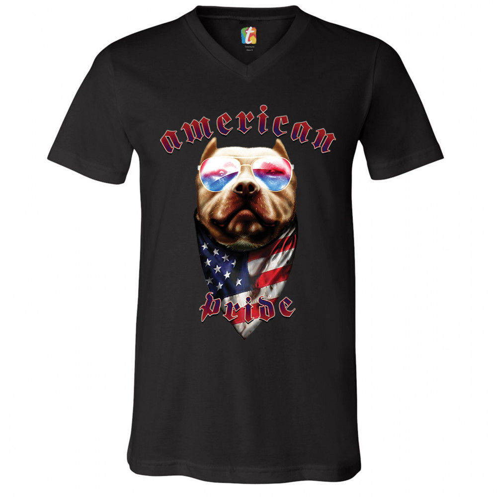 AMERICAN PRIDE PIT BULL v-neck t-shirt us flag bandana patriotic dog lover tee black