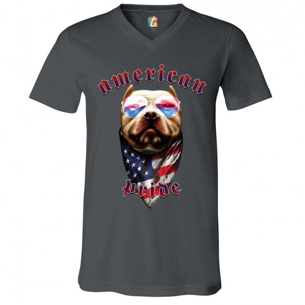 AMERICAN PRIDE PIT BULL v-neck t-shirt us flag bandana patriotic dog lover tee charcoal
