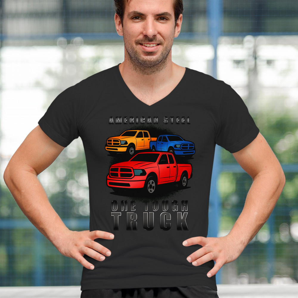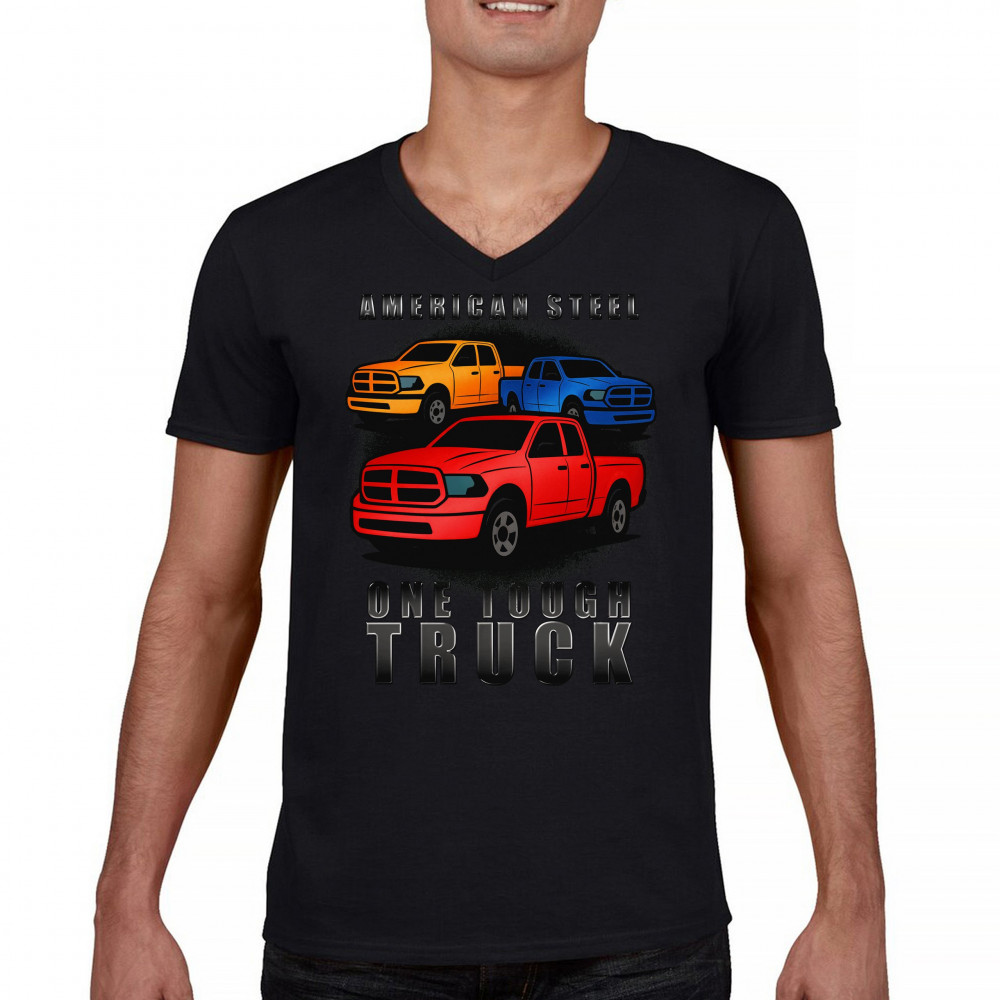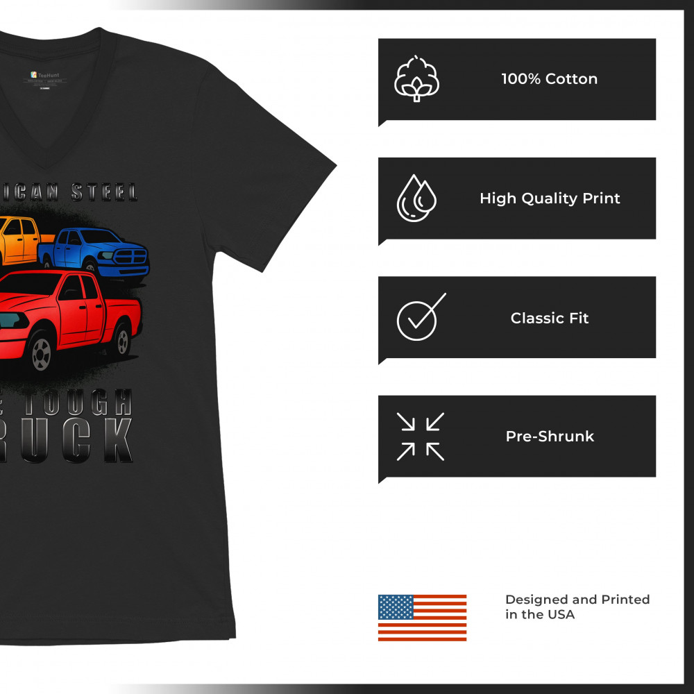 AMERICAN STEEL TOUGH TRUCK men's v-neck t-shirt offroad pickup 4x4 usa rugged black