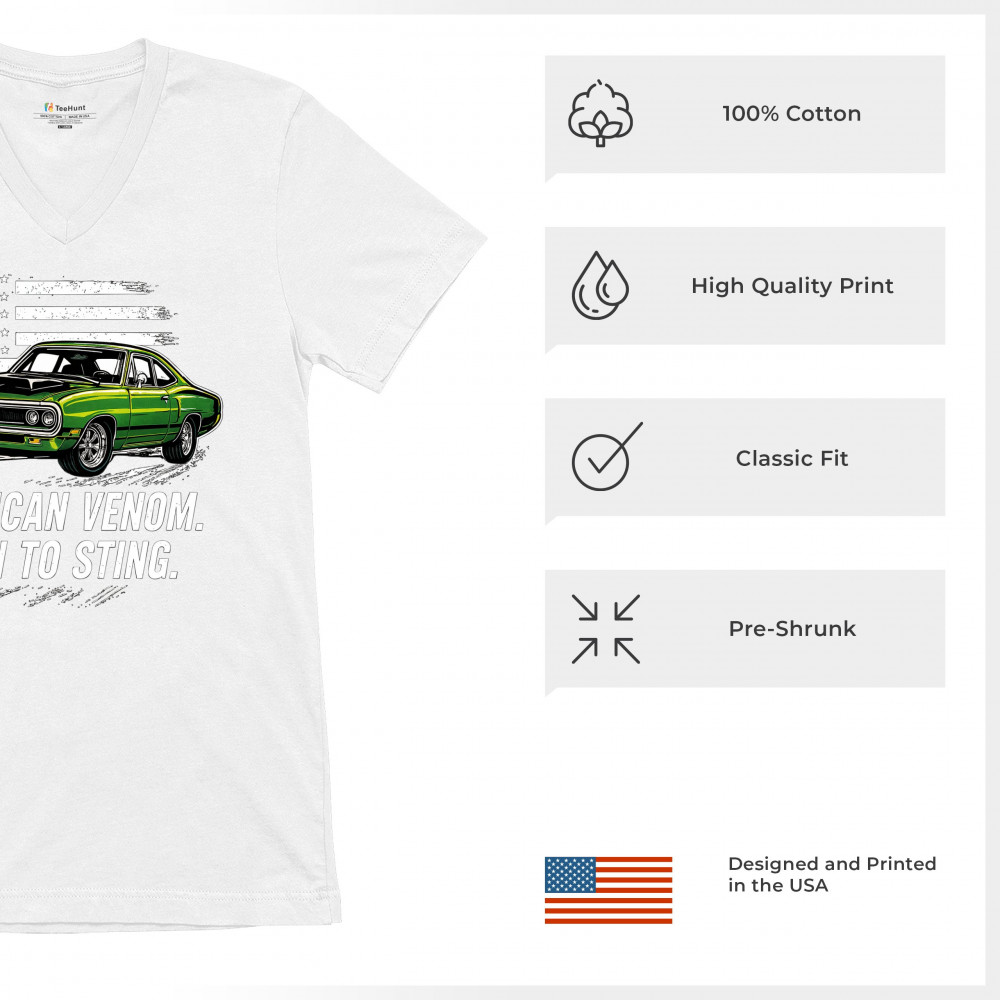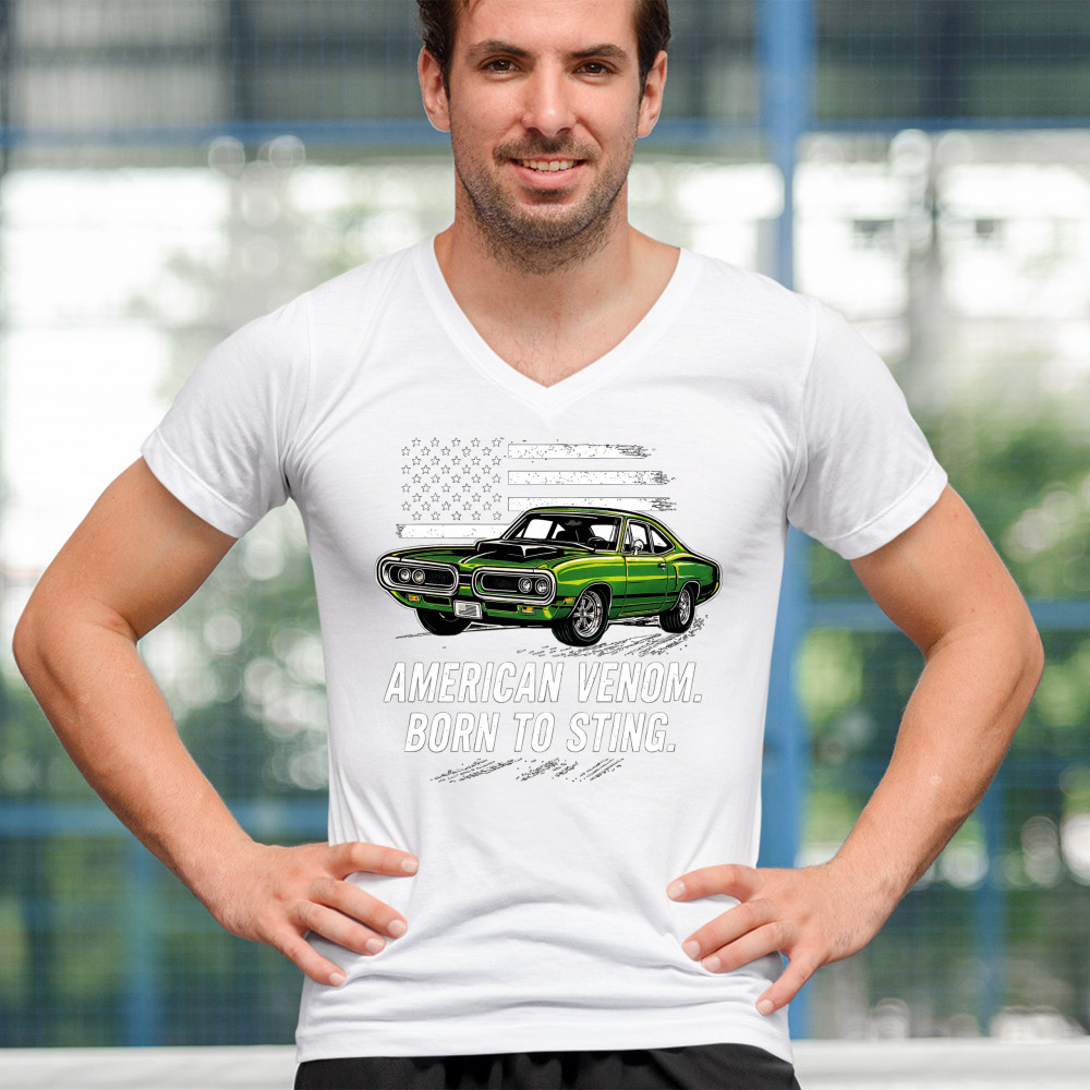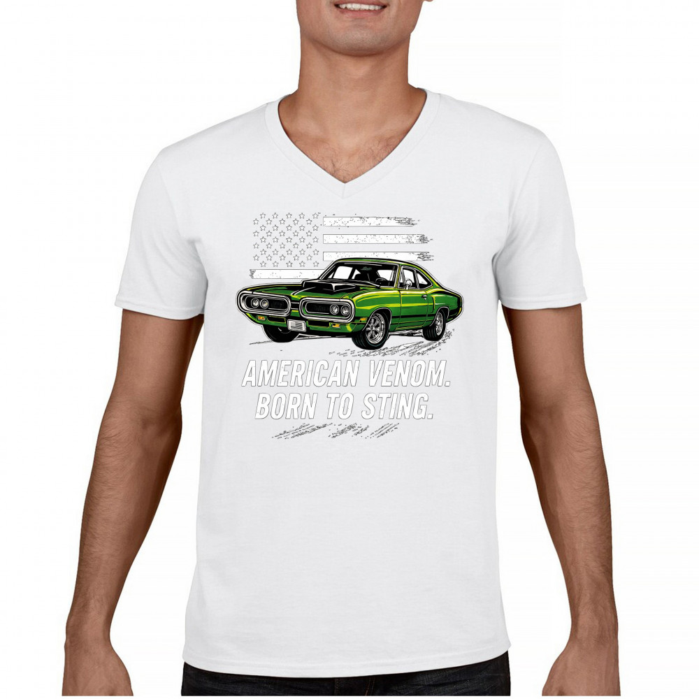 Inject venom into your street style with this bold green muscle car design. With “Born to Sting†power and a backdrop of American pride, this graphic is perfect for Scat fans, gearheads, and drivers who embrace speed, dominance, and the sound of true muscle. Rule car meets, rev battles, and highway runs with unmatched attitude.
