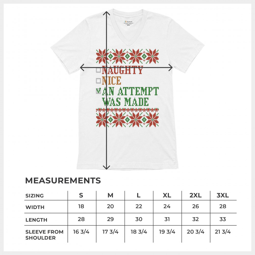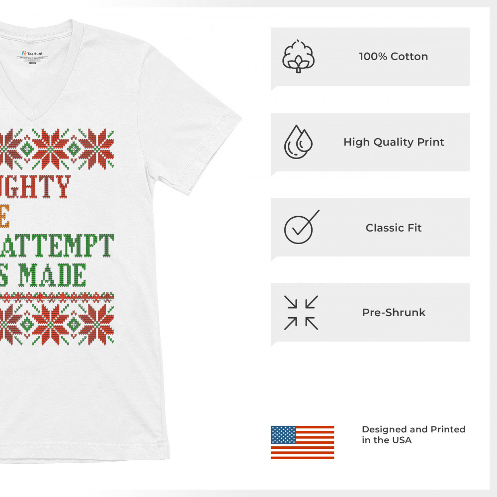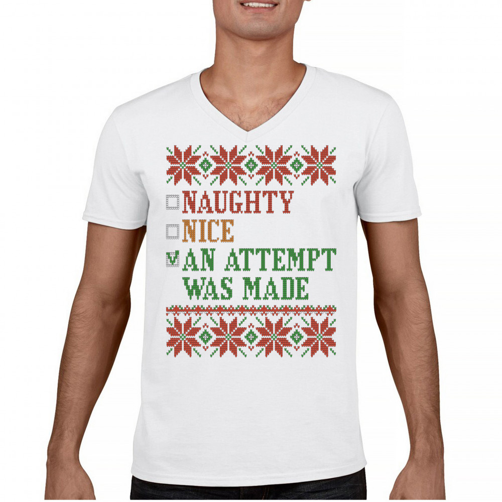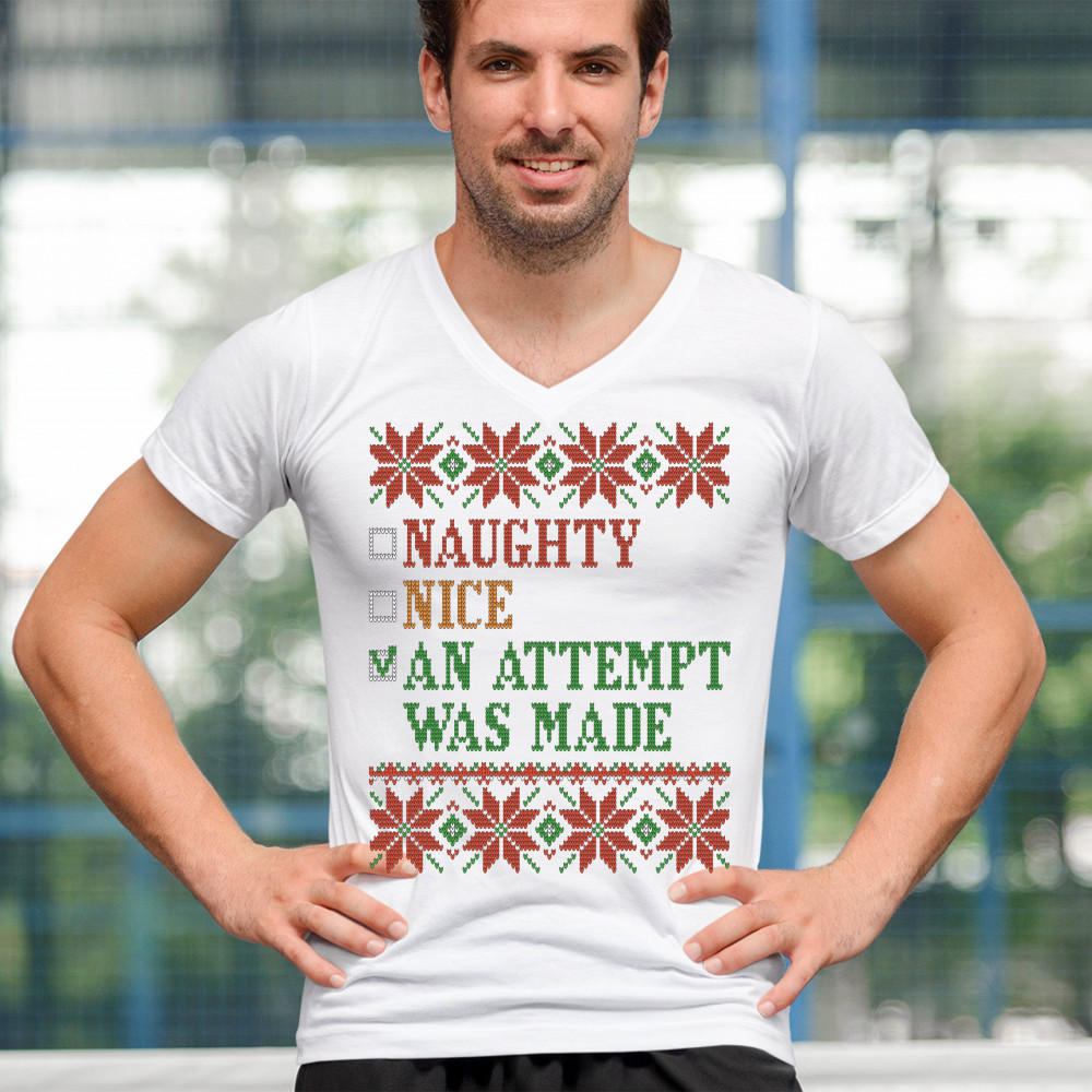 AN ATTEMPT WAS MADE v-neck t-shirt ugly sweater naughty or nice christmas tee white