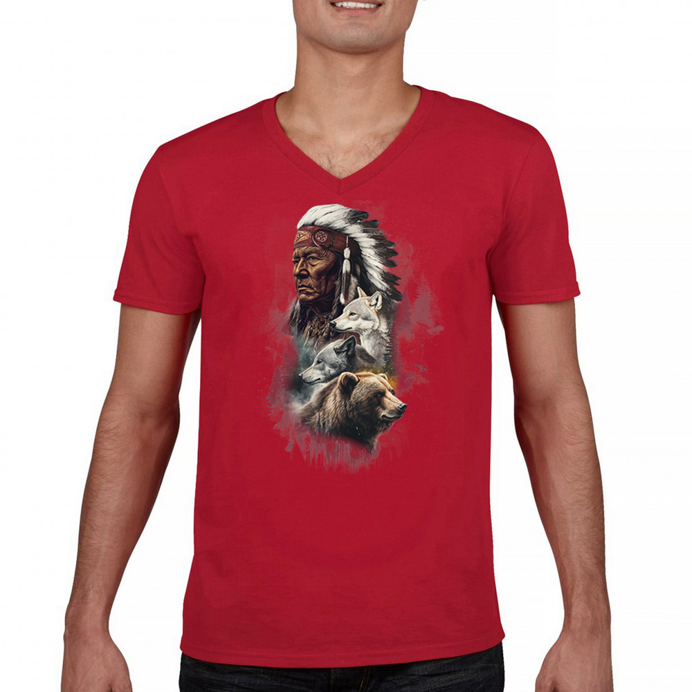 Celebrate spiritual strength and heritage with this design featuring a Native American elder alongside wolves and a bear. This tribal and totemic art reflects wisdom, guardianship, and deep forest spirit energy. Perfect for cultural pride, animal lovers, and those connected to spiritual symbolism in nature.