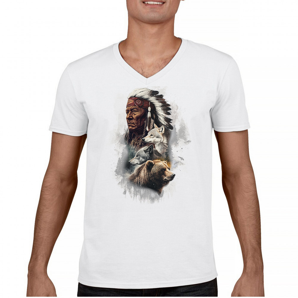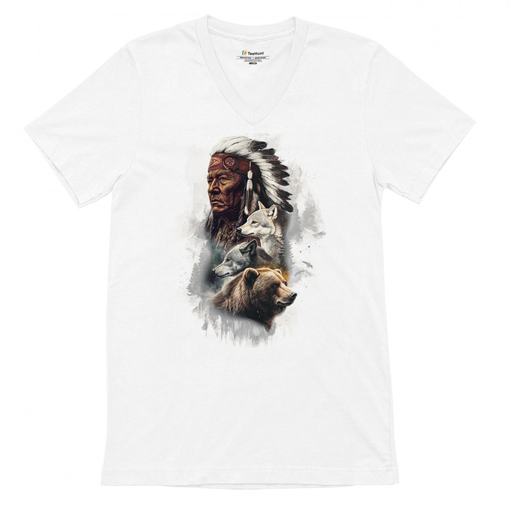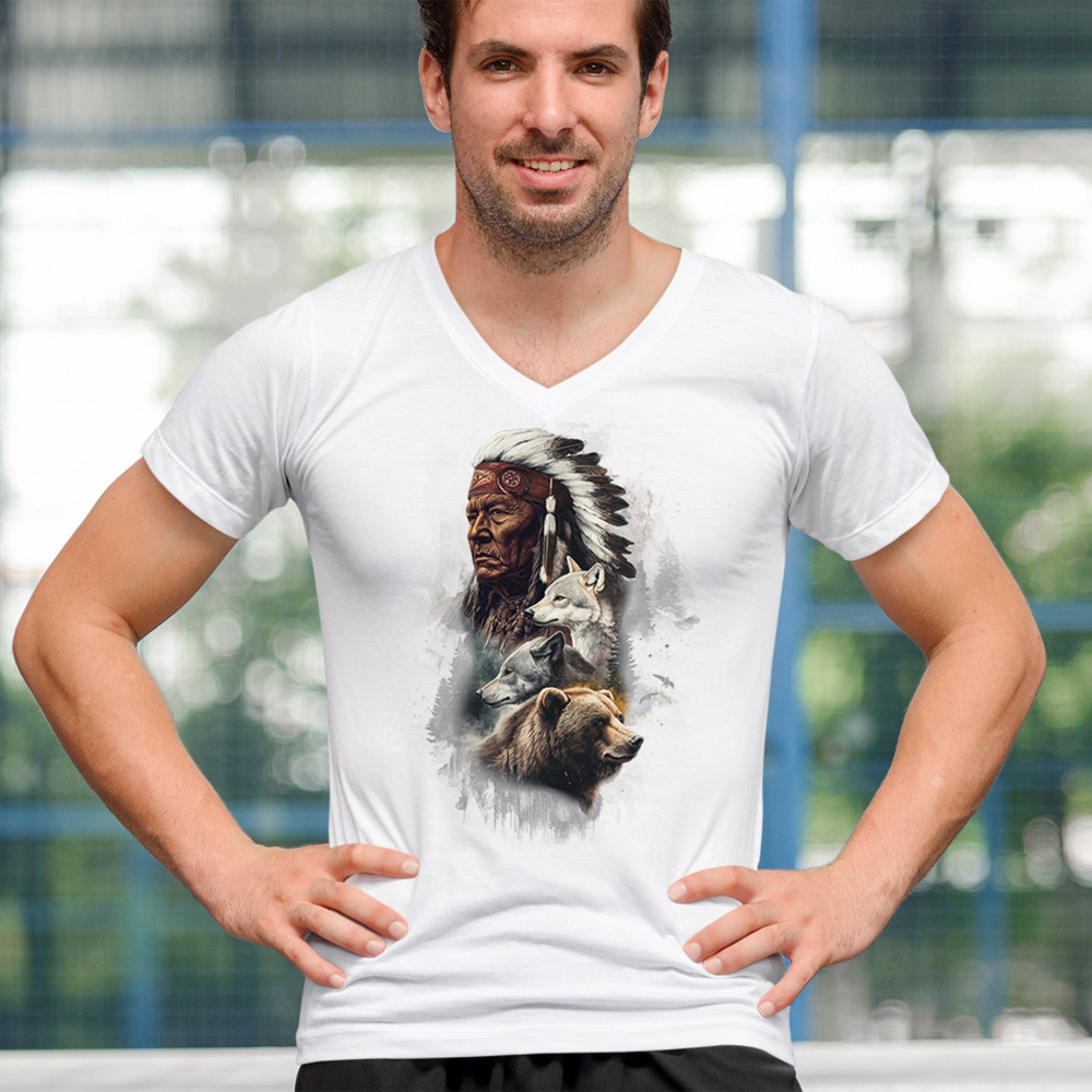 Celebrate spiritual strength and heritage with this design featuring a Native American elder alongside wolves and a bear. This tribal and totemic art reflects wisdom, guardianship, and deep forest spirit energy. Perfect for cultural pride, animal lovers, and those connected to spiritual symbolism in nature.