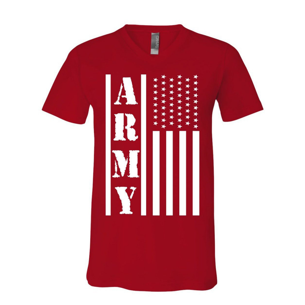 ARMY FLAG MILITARY v-neck t-shirt patriot veteran stars & stripes honor tee red