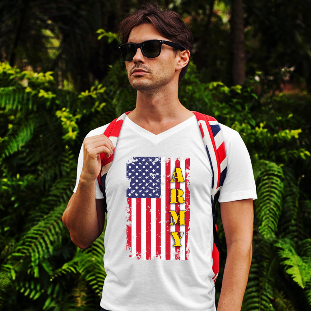 ARMY v-neck t-shirt american flag united states armed forces patriotic tee white