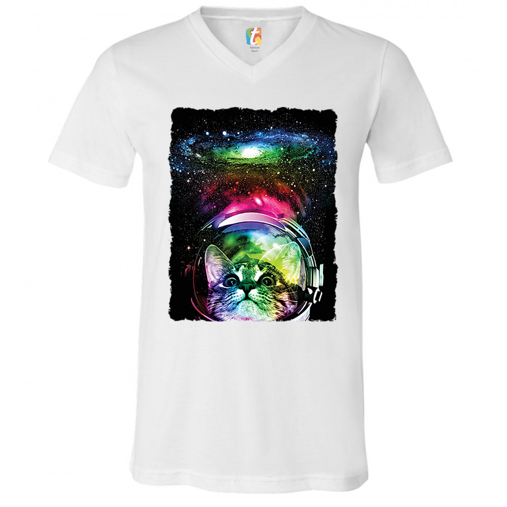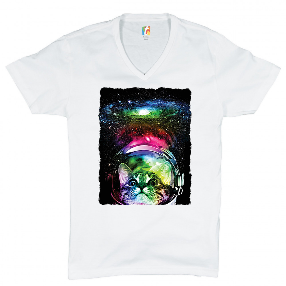 ASTRONAUT CAT v-neck t-shirt space kitty tee white