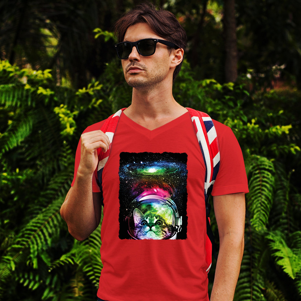 ASTRONAUT CAT v-neck t-shirt space kitty tee red