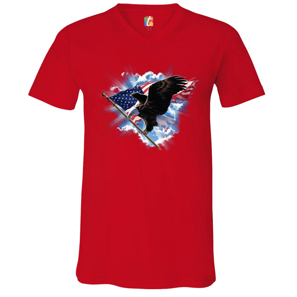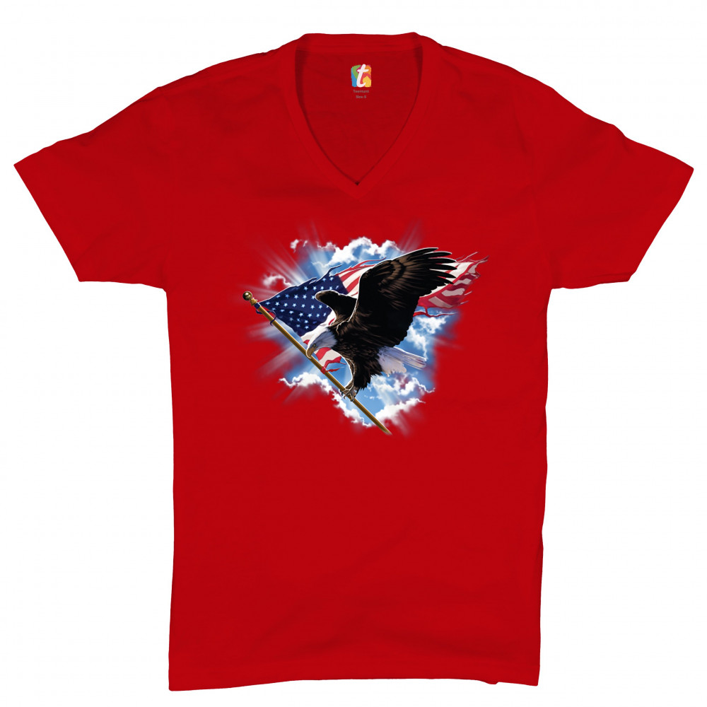 BALD EAGLE CARRYING THE AMERICAN FLAG v-neck t-shirt 4th of july patriotic tee red