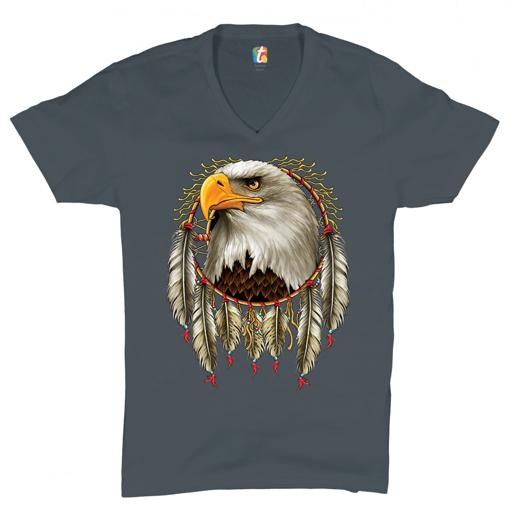 BALD EAGLE DREAMCATCHER v-neck t-shirt indigenous native american heritage tee charcoal