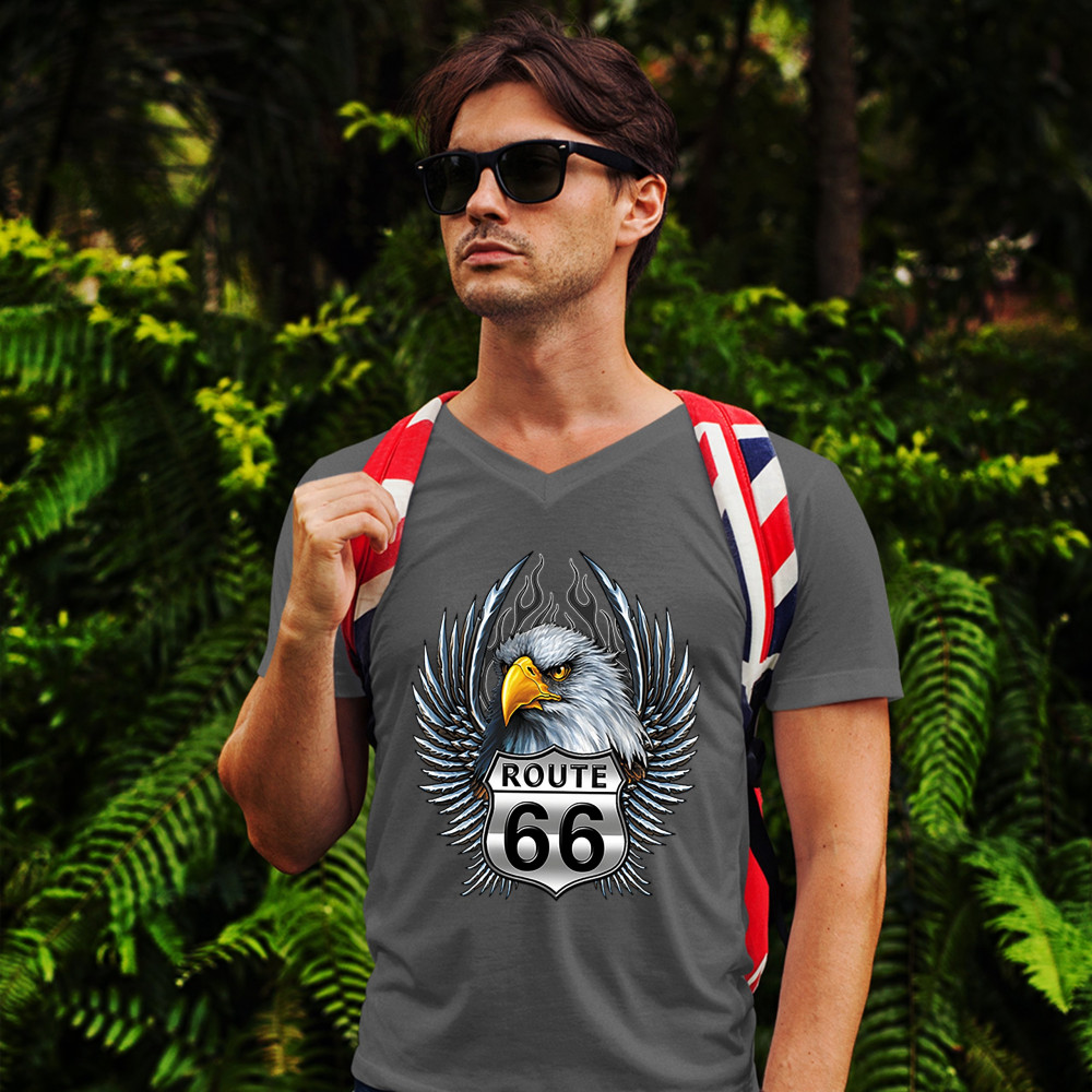 BALD EAGLE ROUTE 66 ROAD SIGN v-neck t-shirt live to ride born to be wild tee charcoal