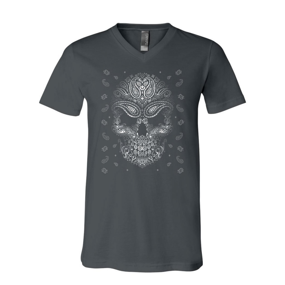 BANDANA SKULL FACE v-neck t-shirt gangsta badass swag urban skeleton tee charcoal