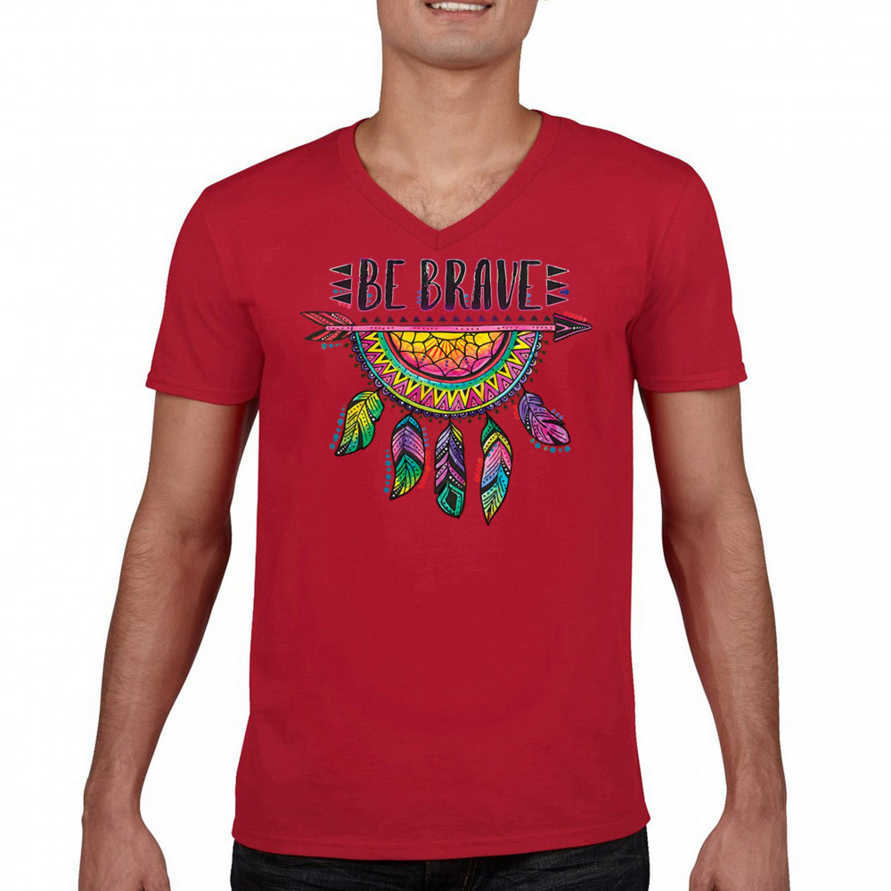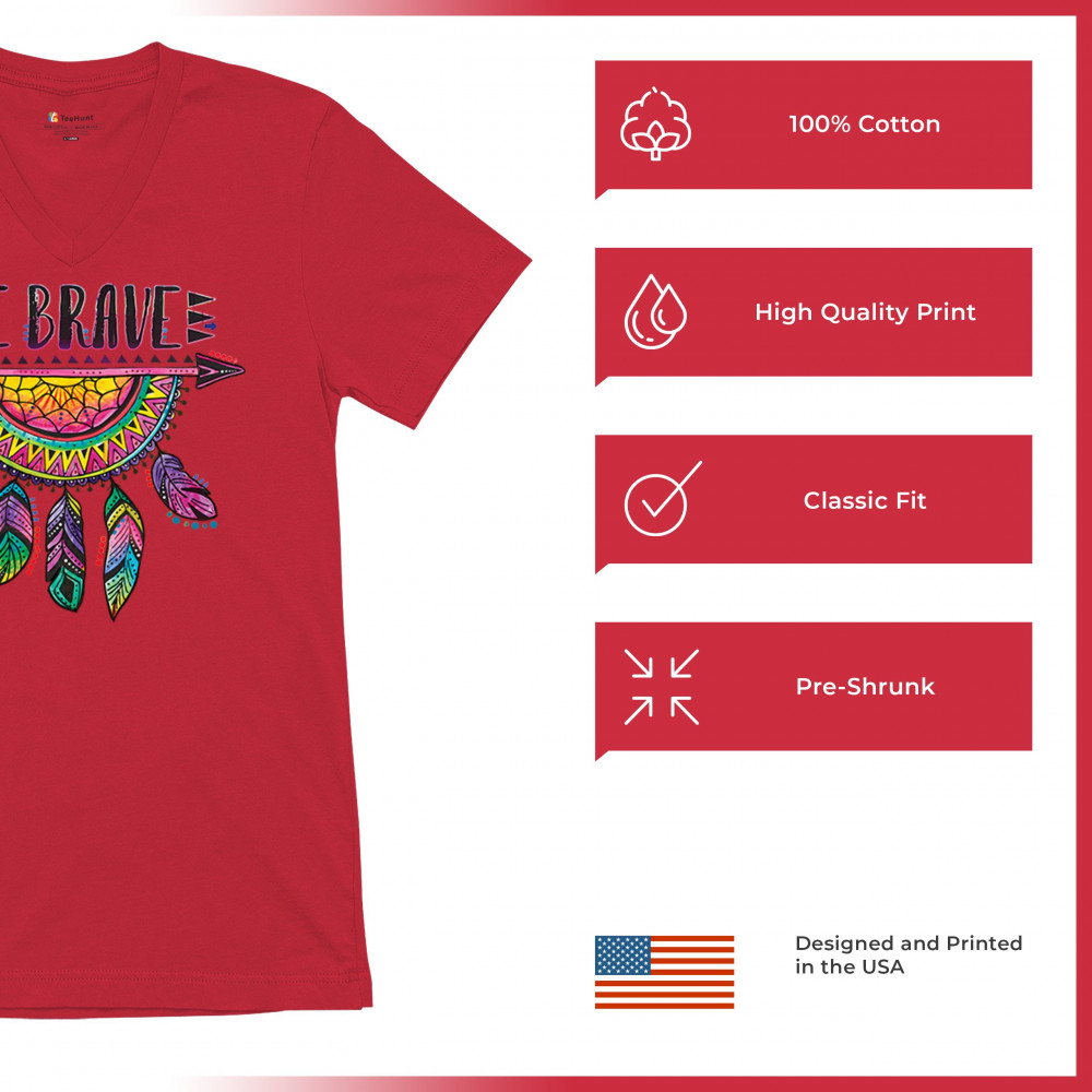 BE BRAVE DREAM CATCHER v-neck t-shirt dean russo motivation feather tee red