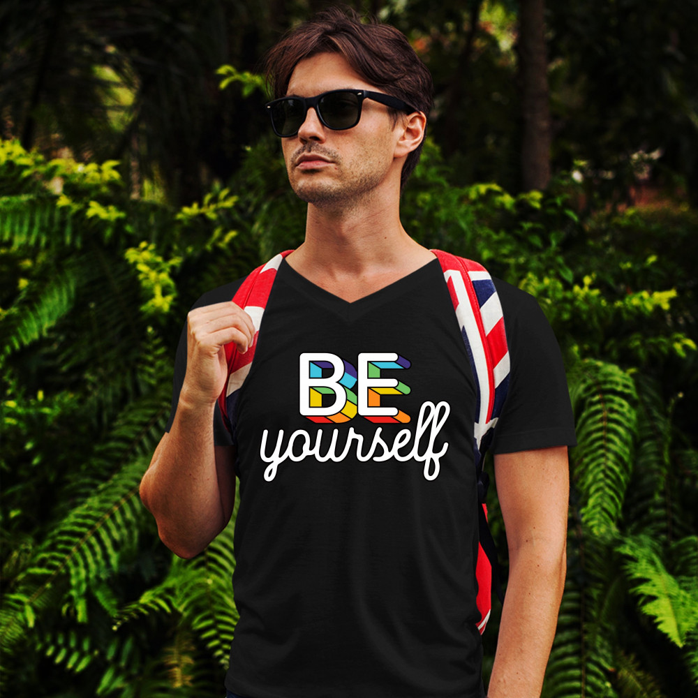 BE YOURSELF v-neck t-shirt lgbt support gay pride rainbow good vibes ally tee black
