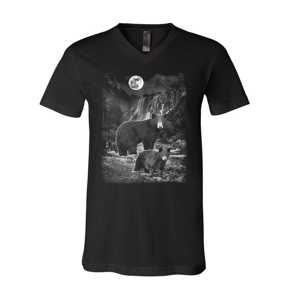 BEARS IN THE NIGHT v-neck t-shirt brown bear grizzly wilderness animals tee black