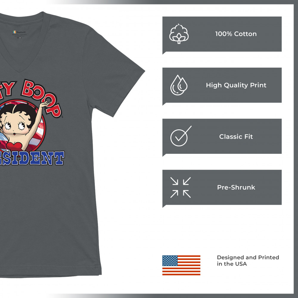 Show your playful side with the Betty Boop for President shirt! Perfect for cartoon lovers and fans of unique, humorous designs. Ideal gift for all occasions.
