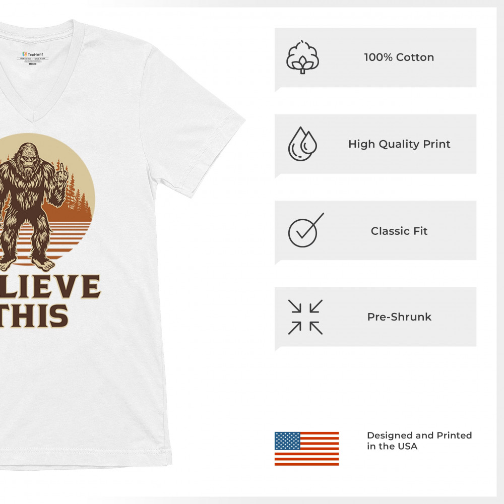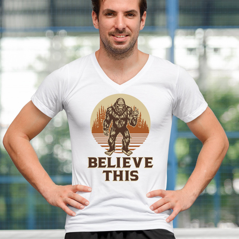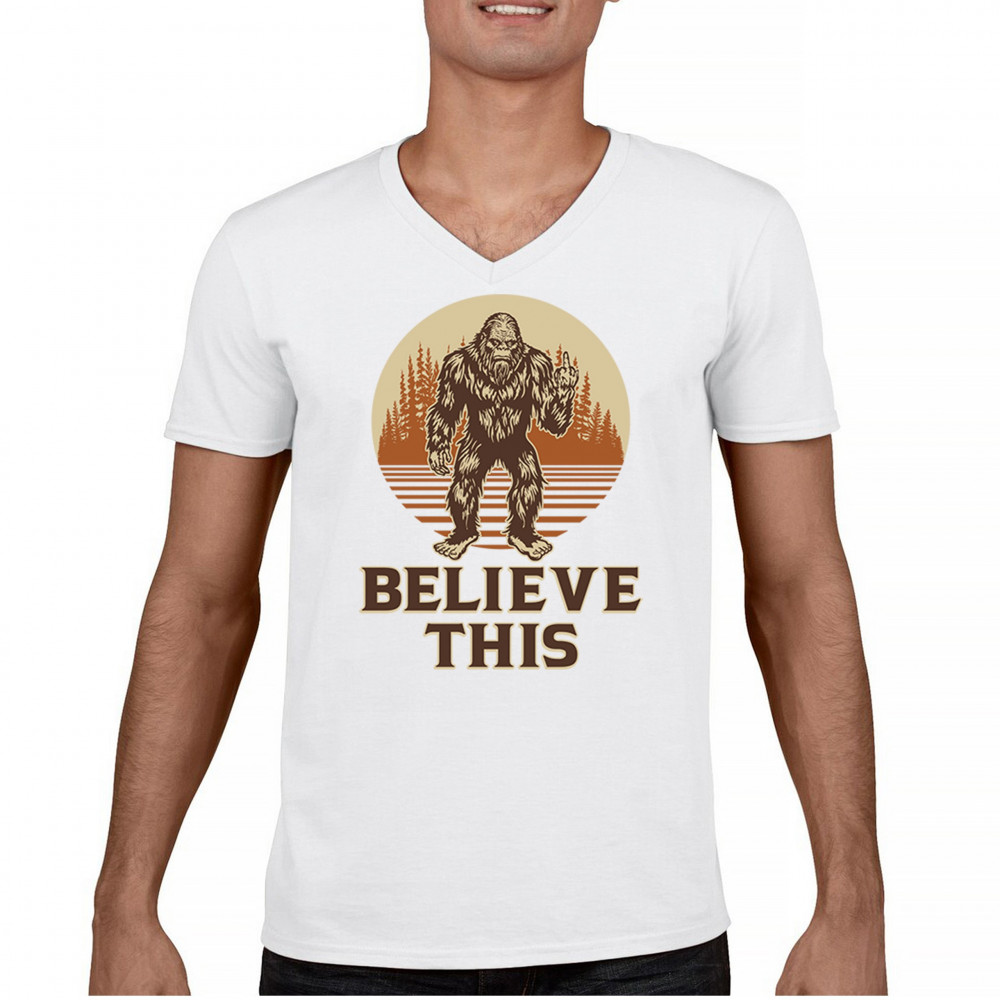 The Believe This Bigfoot design blends cryptid folklore with blunt attitude—because sometimes you just don’t care who believes. Featuring Bigfoot flipping the bird against a rustic tree line, it’s perfect for campers, rebels, and fans of sarcastic forest humor. Ideal for hikes, festivals, and off-grid living.