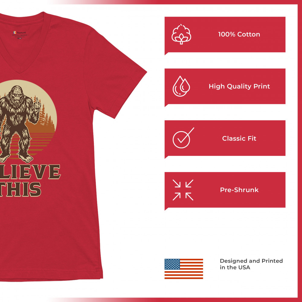 The Believe This Bigfoot design blends cryptid folklore with blunt attitude—because sometimes you just don’t care who believes. Featuring Bigfoot flipping the bird against a rustic tree line, it’s perfect for campers, rebels, and fans of sarcastic forest humor. Ideal for hikes, festivals, and off-grid living.