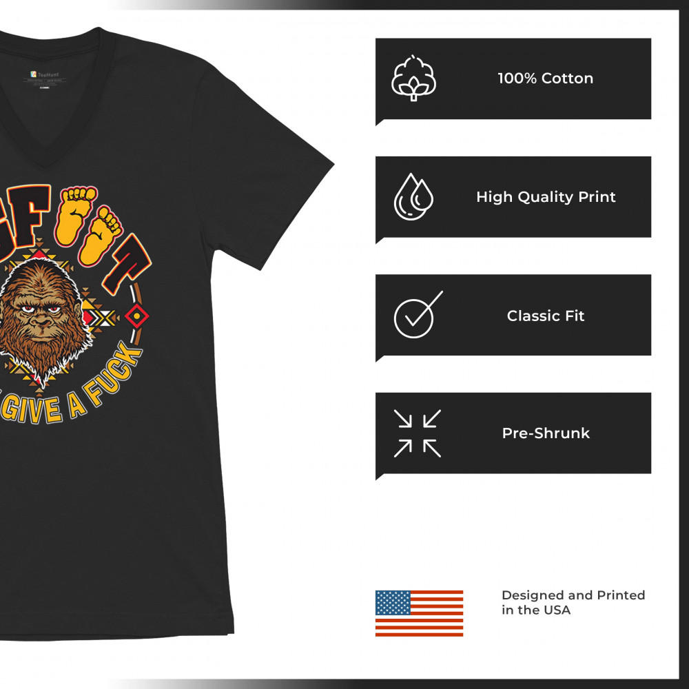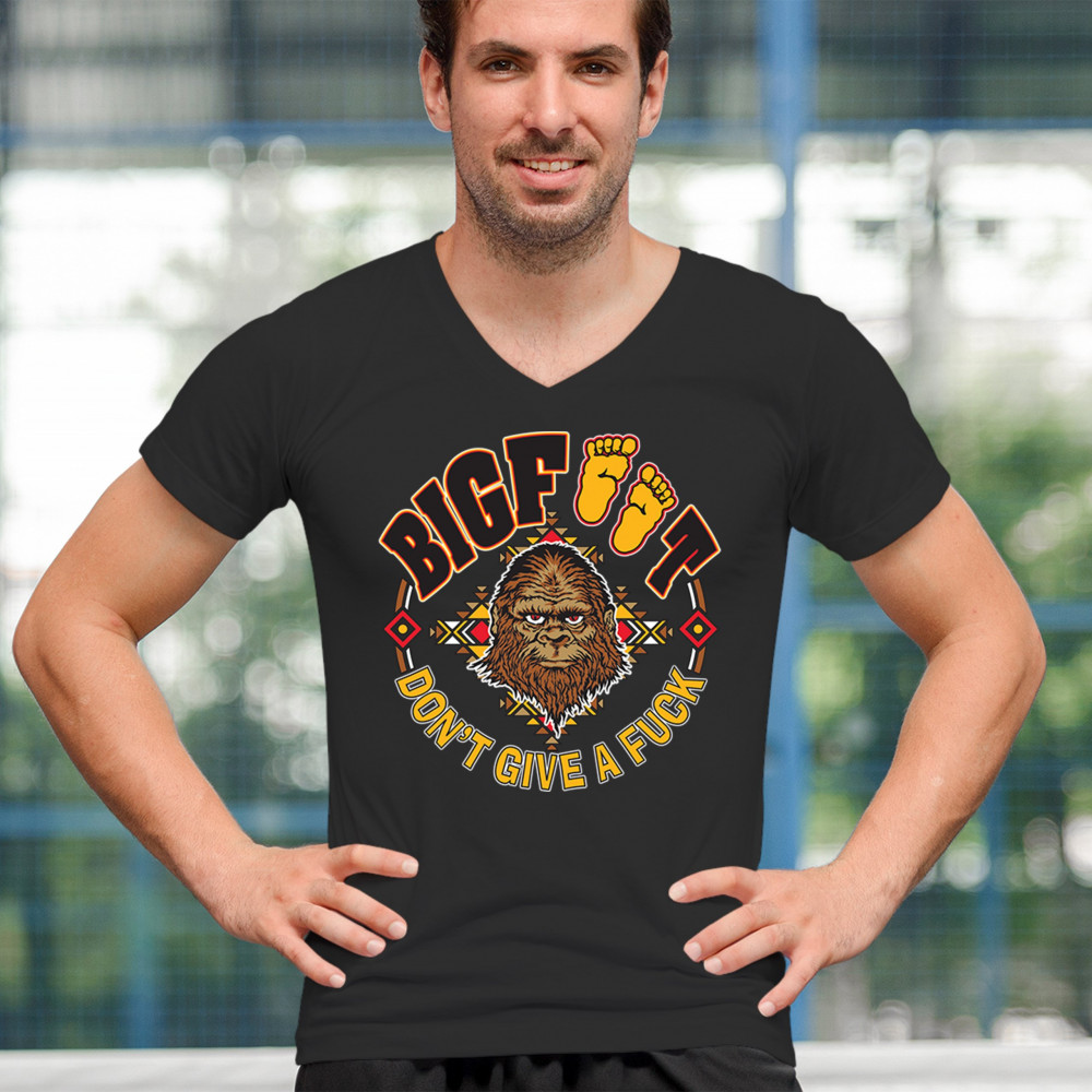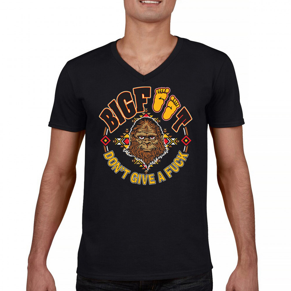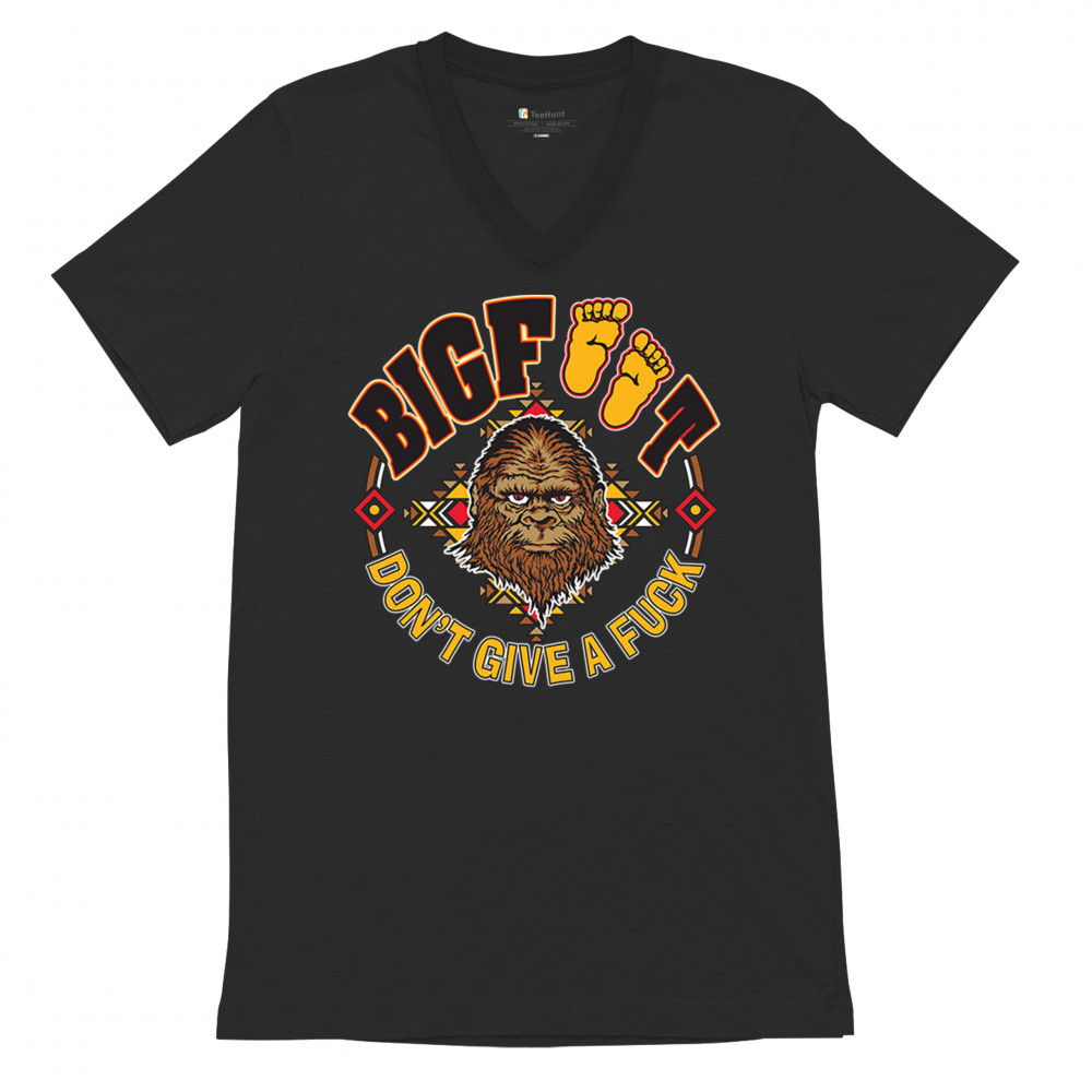 BIGFOOT DON’T GIVE F CK v-neck t-shirt funny sasquatch humor hide and seek tee black