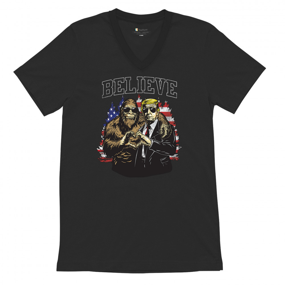 BIGFOOT ENDORSED TRUMP 24 v-neck t-shirt president sasquatch believe maga tee black