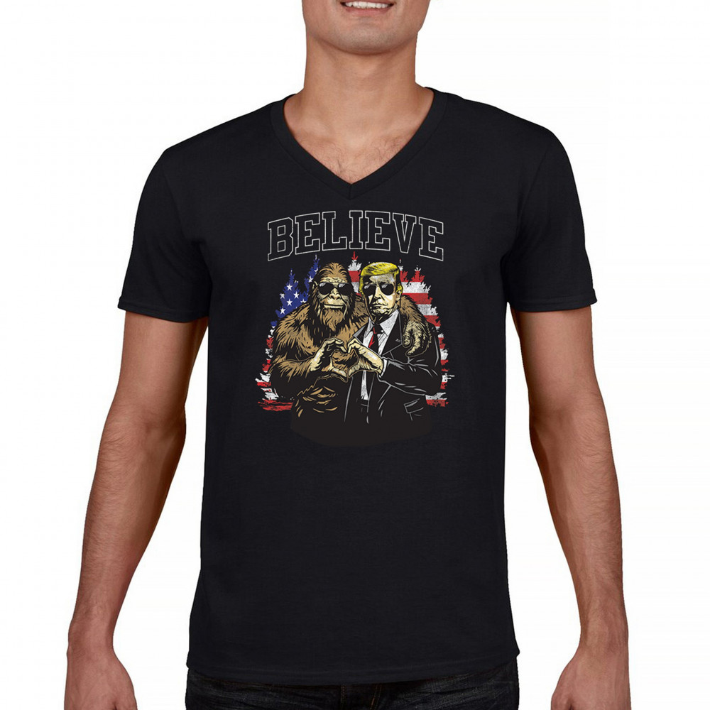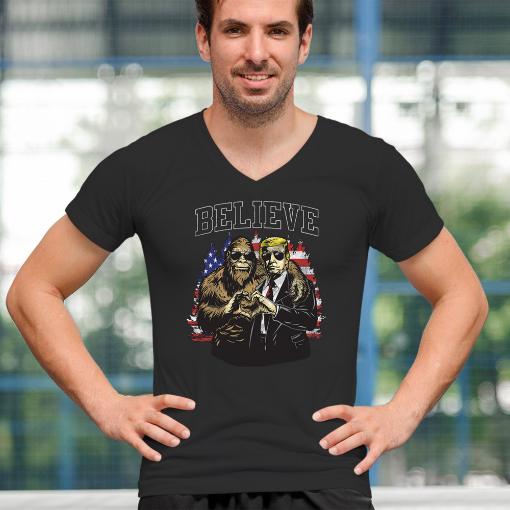 The "Believe" design combines patriotic pride and conservative values with a touch of fun. Featuring Donald J. Trump and a loyal Bigfoot against the American flag, this graphic is perfect for Trump supporters, Republicans, and believers in America First. Celebrate the Red Wave, the 47th President, and the unstoppable fight for victory. Ideal for anyone with unwavering belief in the people's mandate.