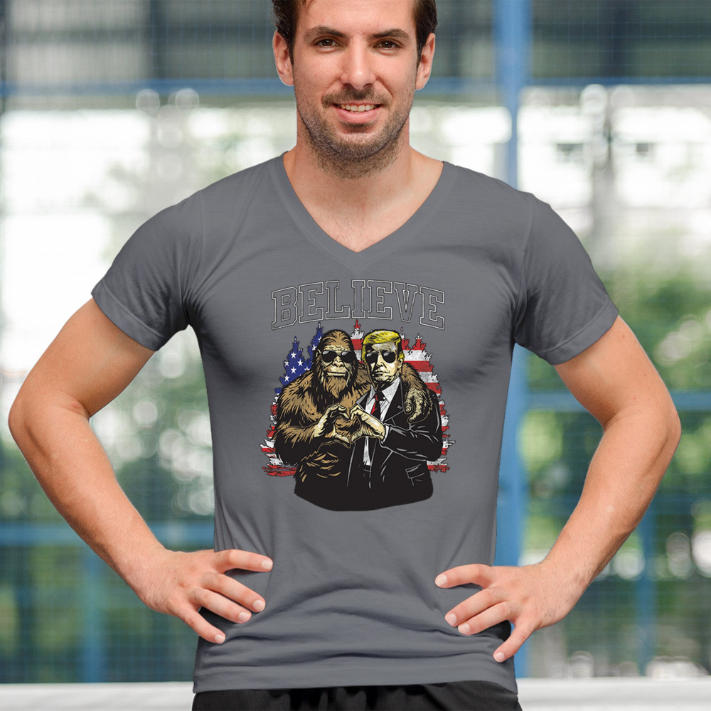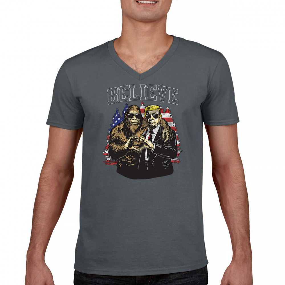 Show your belief with Trump and Bigfoot! Celebrate America First, the Red Wave, and conservative pride with this unique and patriotic design.