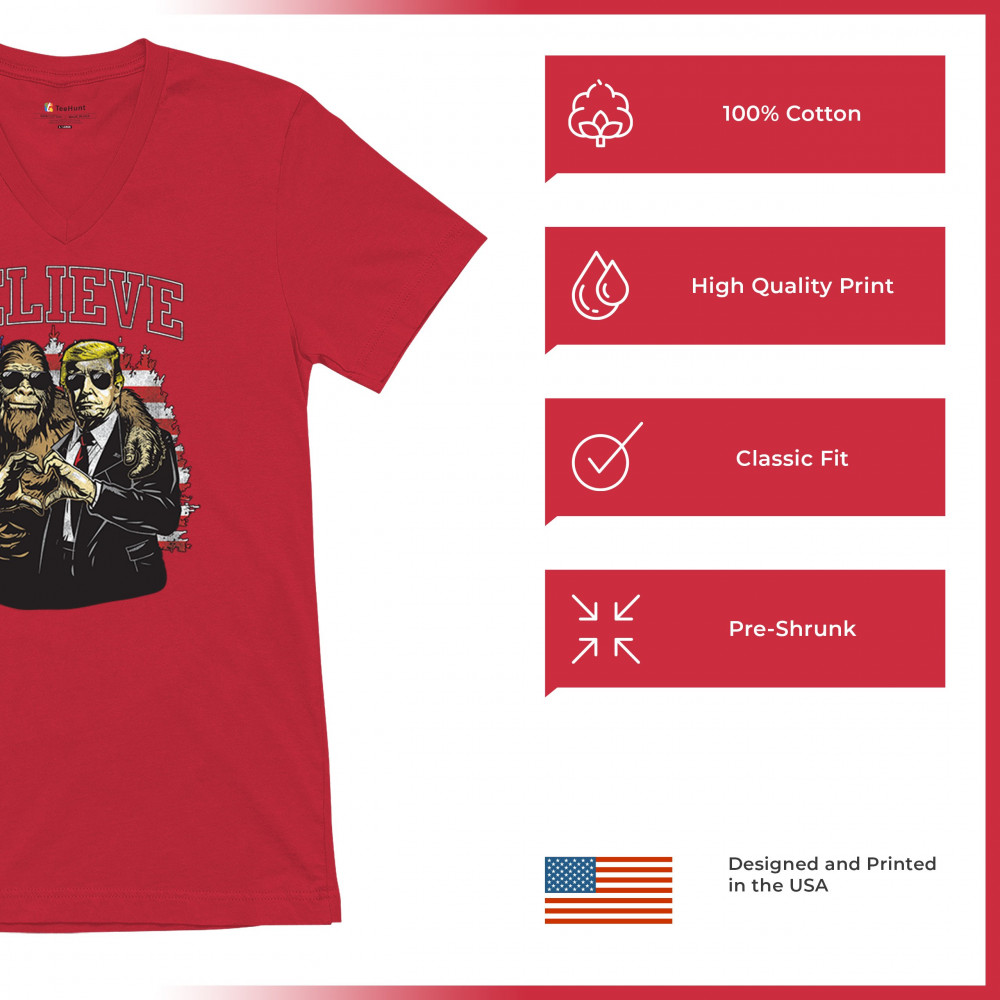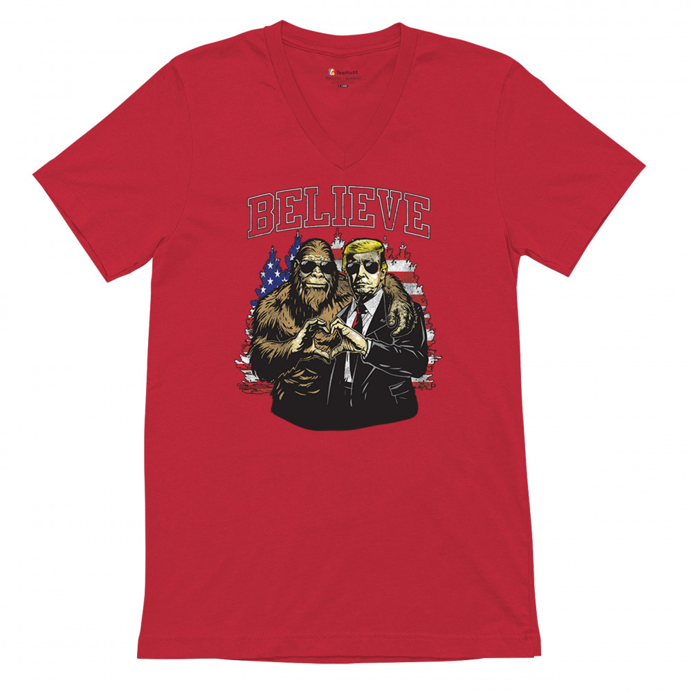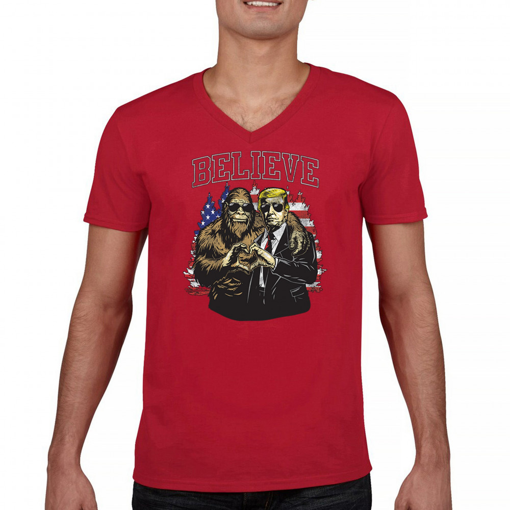 Show your belief with Trump and Bigfoot! Celebrate America First, the Red Wave, and conservative pride with this unique and patriotic design.
