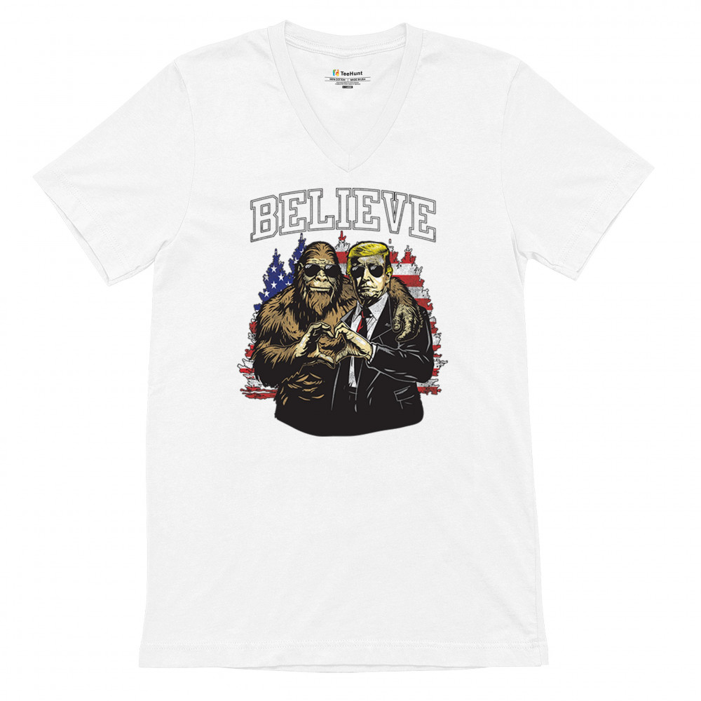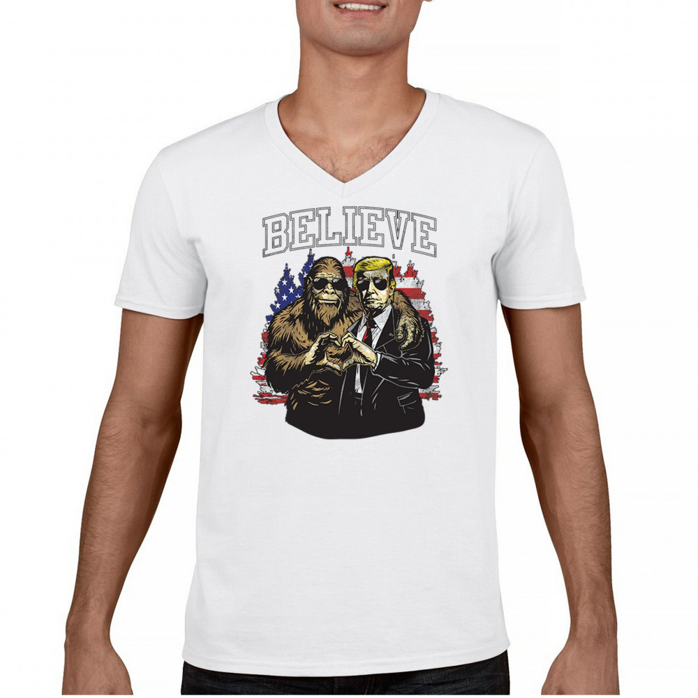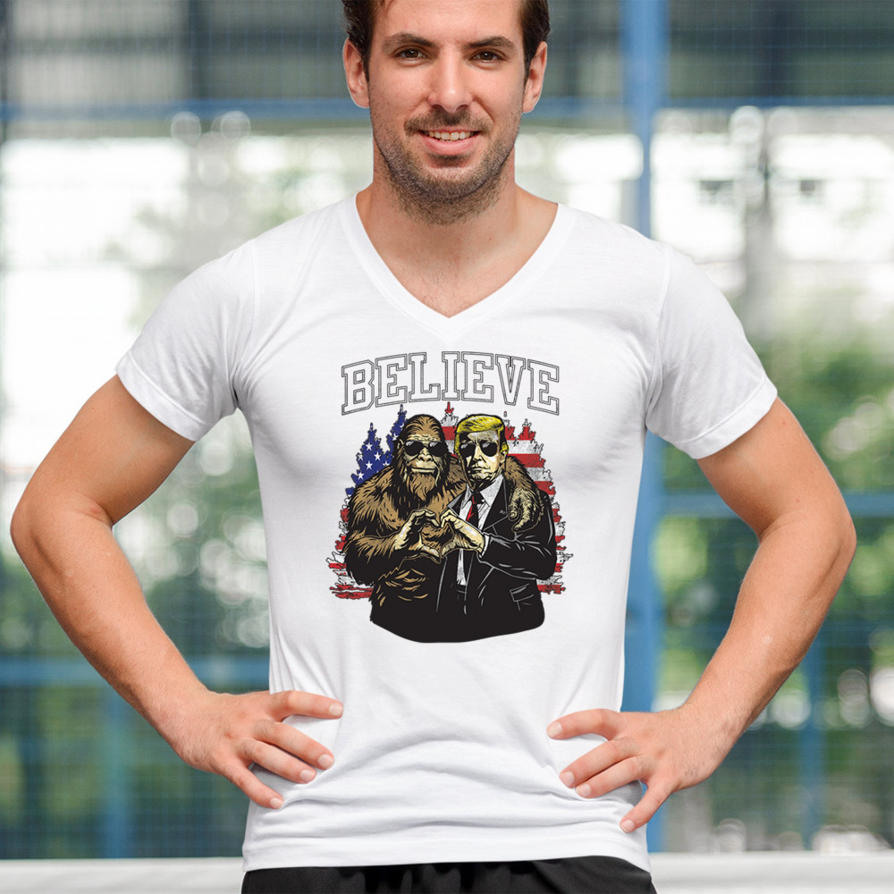 Show your belief with Trump and Bigfoot! Celebrate America First, the Red Wave, and conservative pride with this unique and patriotic design.
