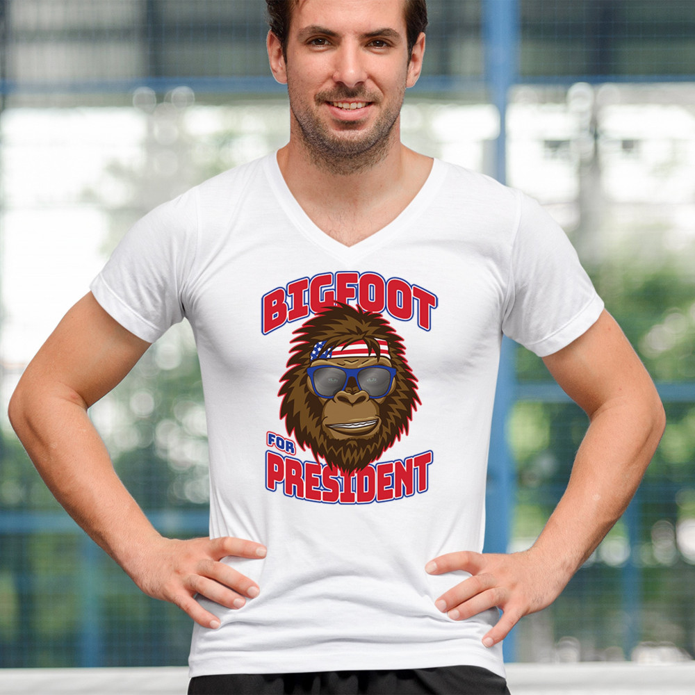 Show off your quirky style with the "Bigfoot for President" design. Perfect for casual wear and parties, featuring Bigfoot in sunglasses and a patriotic bandana.