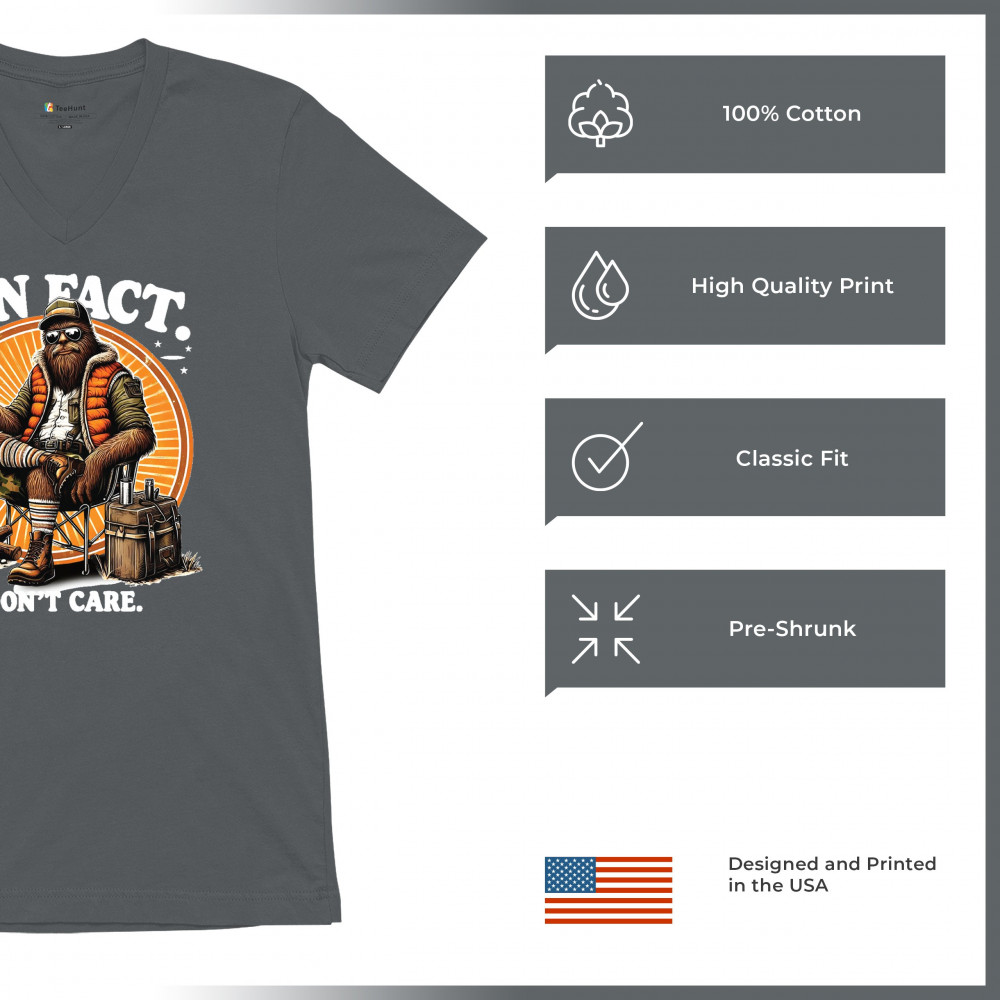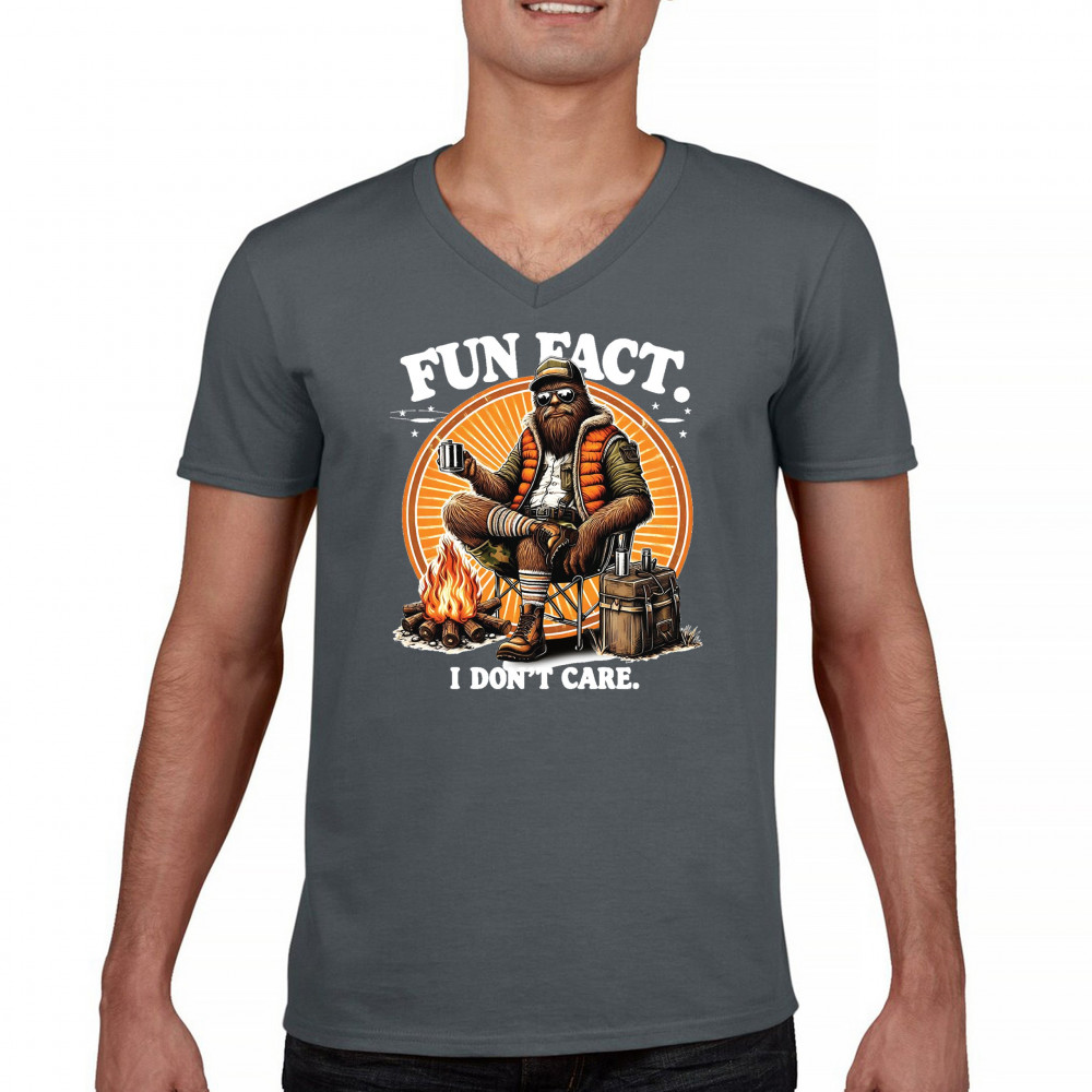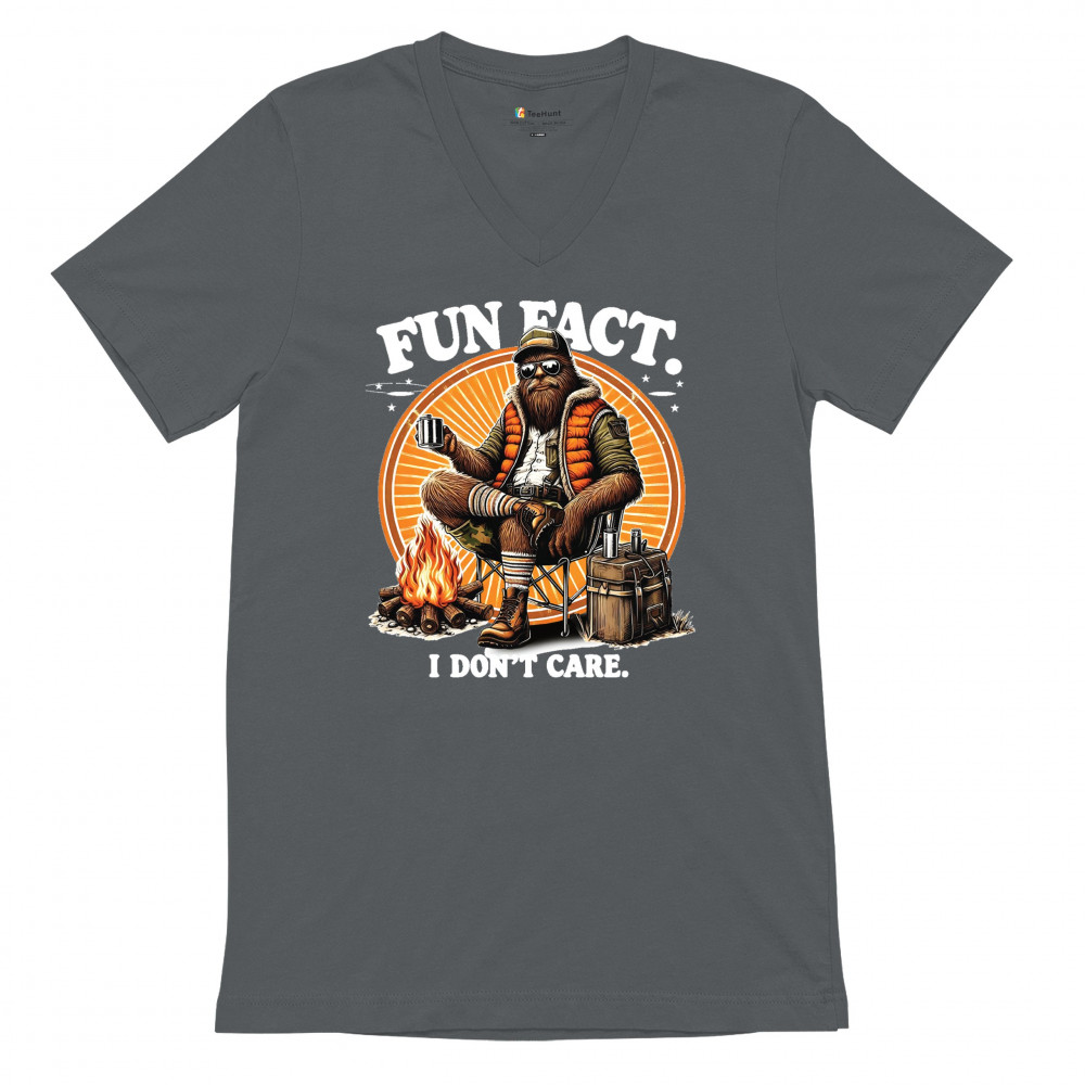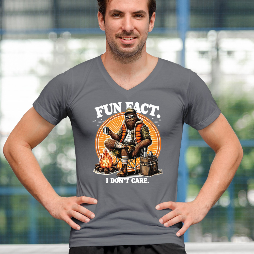 Funny Bigfoot Fun Fact design with cryptid humor, sarcastic outdoors shirt vibe, retro Sasquatch saying, USA pride, and camping adventure style.