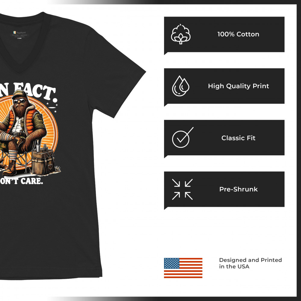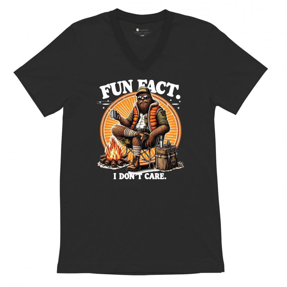 Funny Bigfoot Fun Fact design with cryptid humor, sarcastic outdoors shirt vibe, retro Sasquatch saying, USA pride, and camping adventure style.
