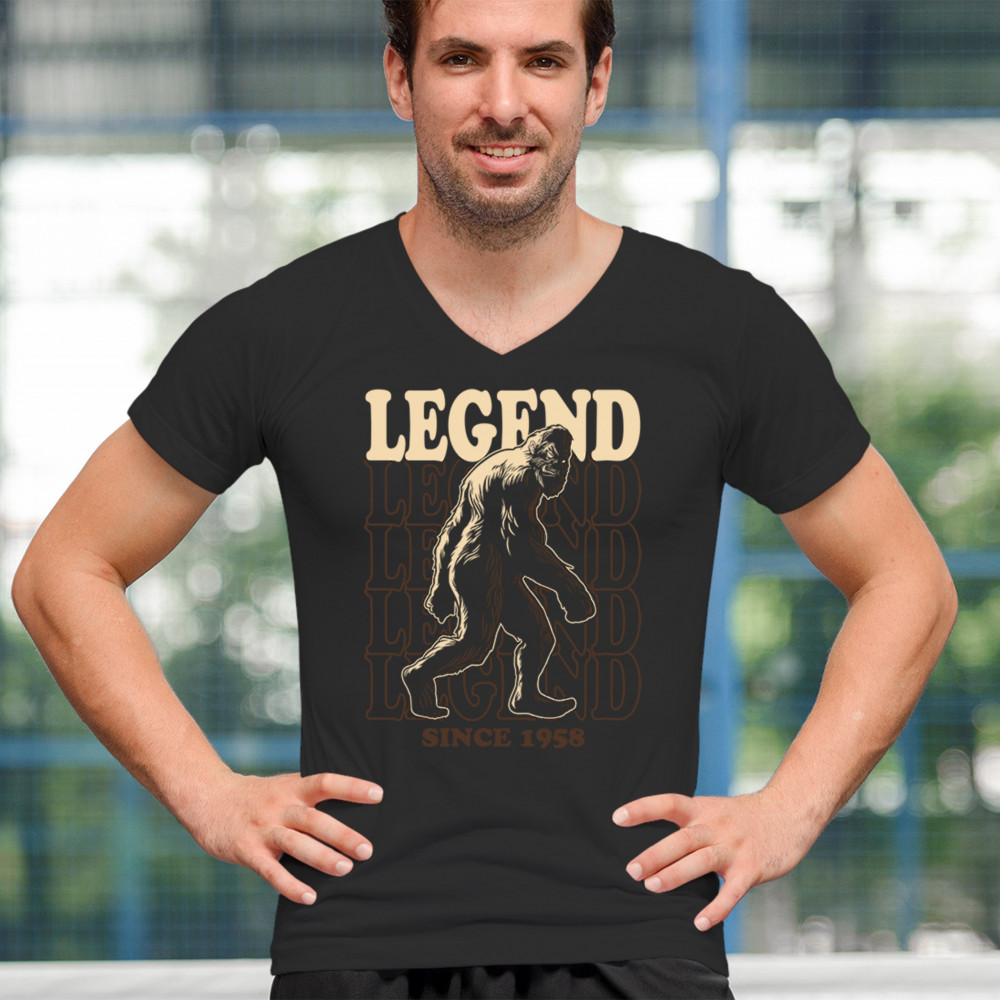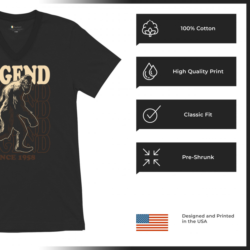 BIGFOOT LEGEND SINCE 1958 v-neck t-shirt funny vintage classic sasquatch tee black