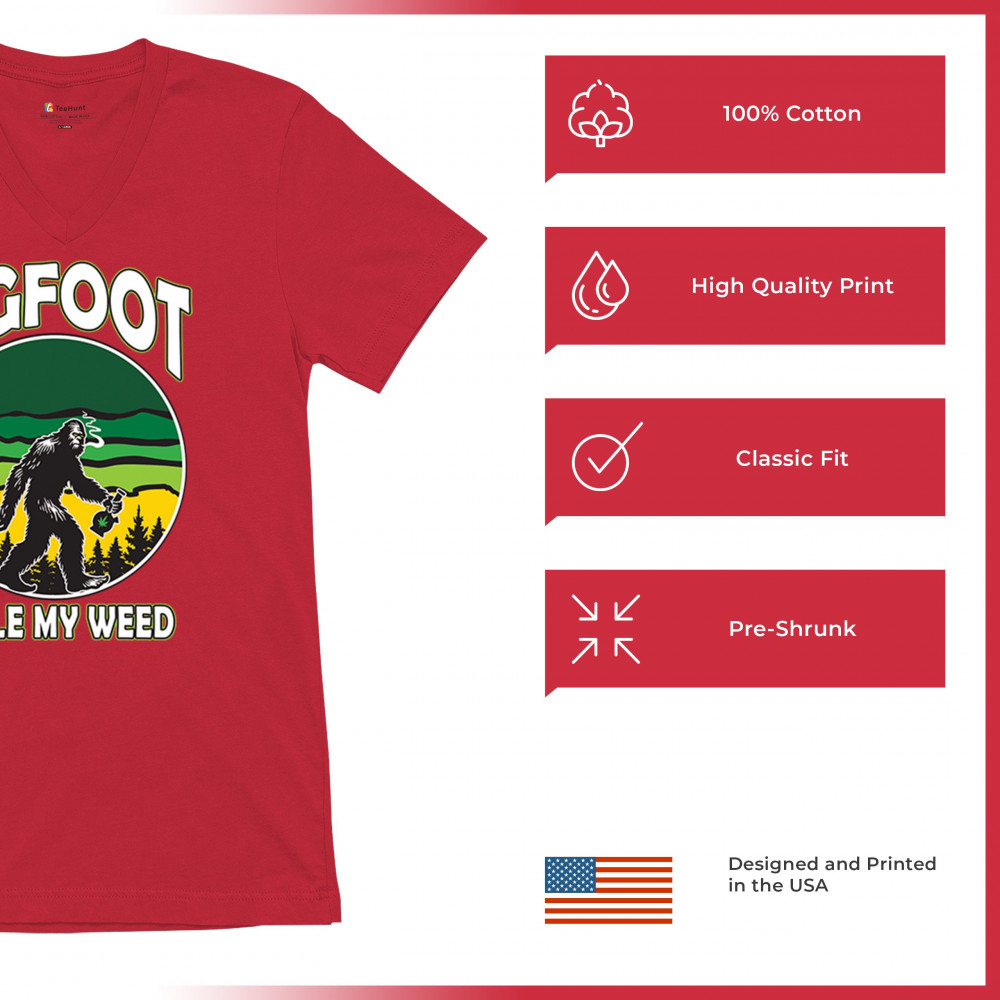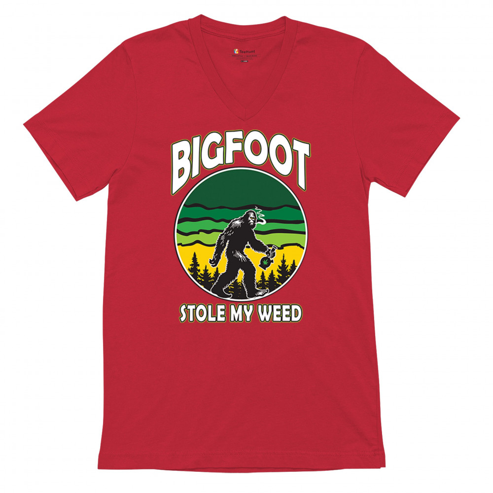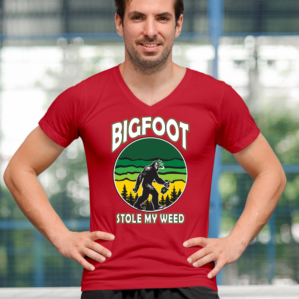 Humorous "Bigfoot Stole My Weed" design featuring Bigfoot and a cannabis leaf. Perfect for fans of Mary Jane, stoned humor, and a chill lifestyle.