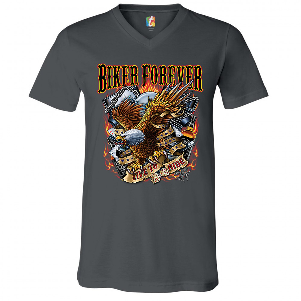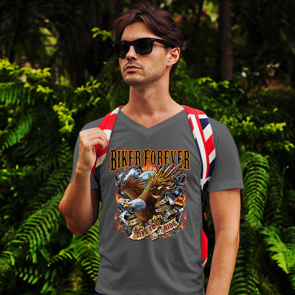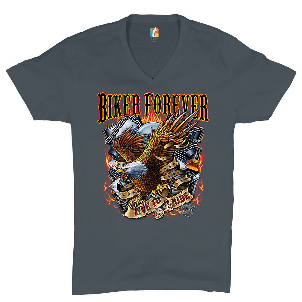BIKER FOREVER LIVE TO RIDE v-neck t-shirt american eagle motorcycle tee charcoal