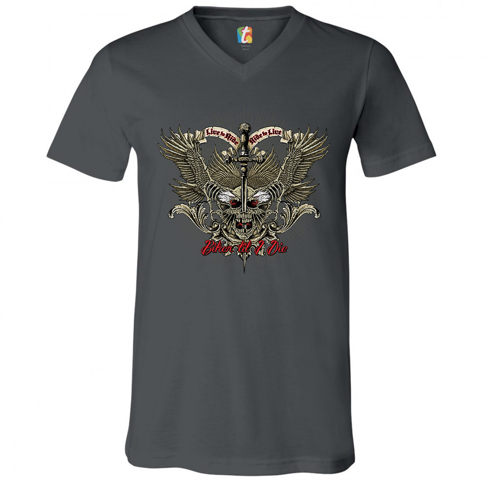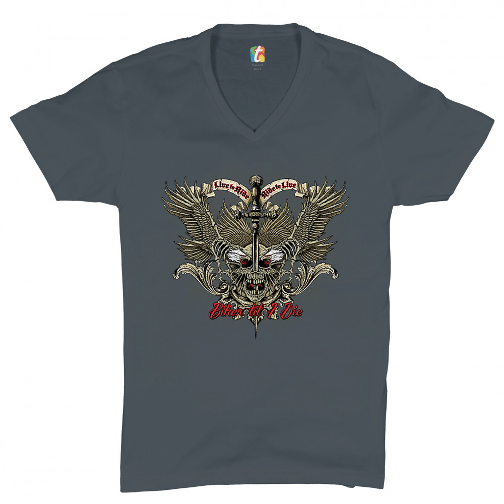 BIKER TIL I DIE v-neck t-shirt live to ride biker forever skull face tee charcoal