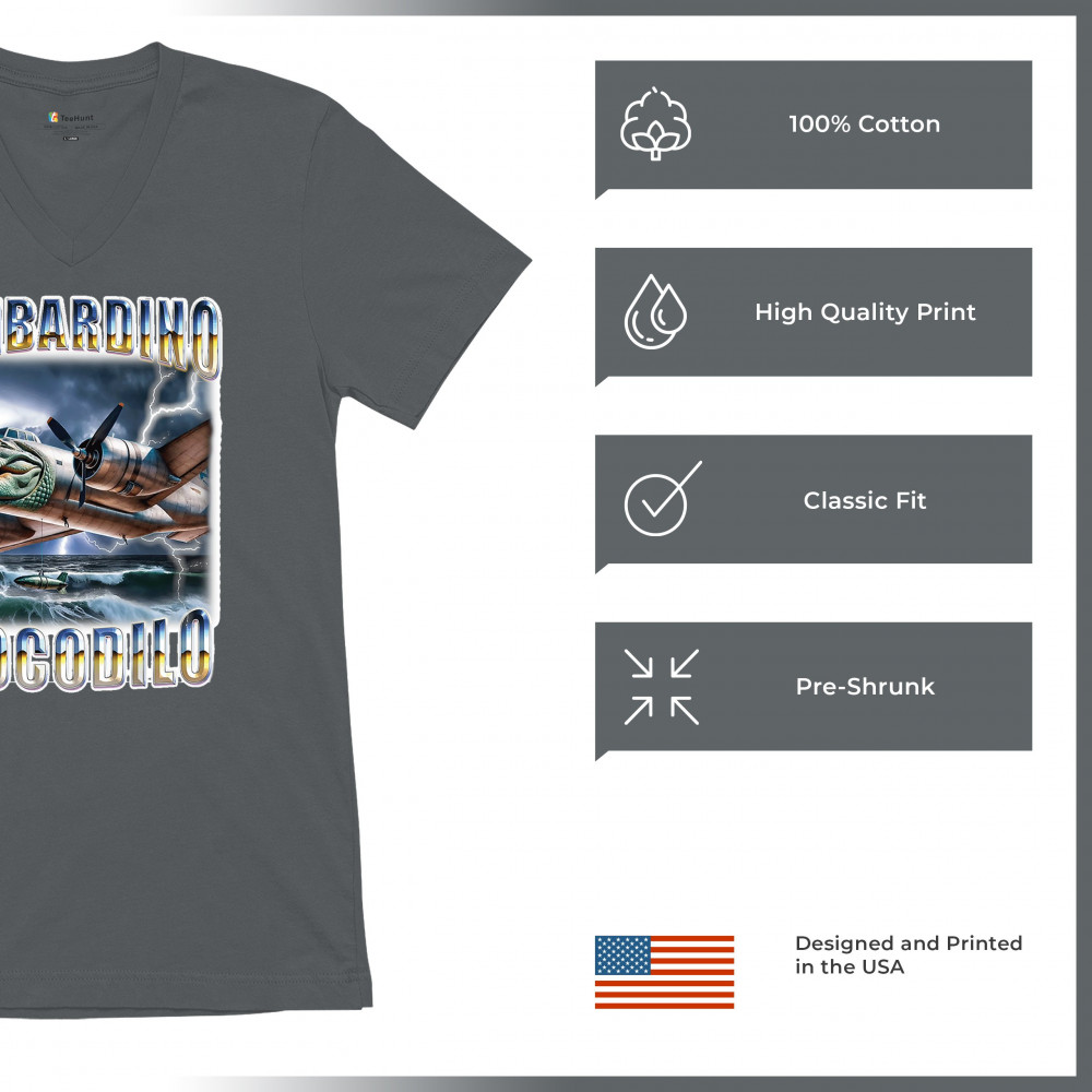 Bombardino Crocodilo is meme fashion with teeth. Featuring a crocodile-faced bomber jet flying through internet chaos, this Italian Brainrot masterpiece blends weirdcore visuals, cursed meme logic, and Gen Z humor. Perfect for fans of surreal fashion, viral absurdity, and TikTok-driven ironic style.