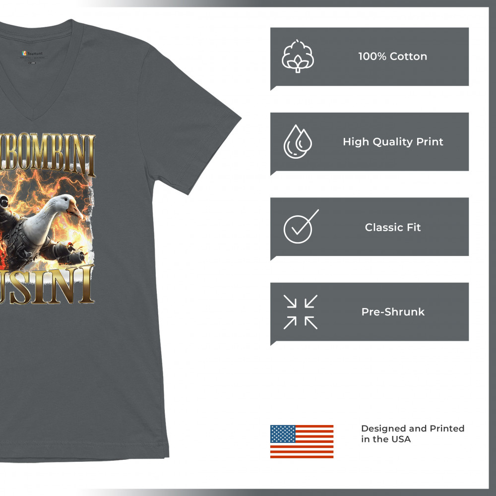 Bombombini Gusini is meme chaos at Mach speed. Featuring a mechanized goose powered by pure Italian Brainrot energy, this design blends cursed-core humor, Gen Z absurdity, ironic fashion, and weirdcore visuals. Perfect for animal meme fans, TikTok-core addicts, and anyone whose humor is completely unhinged.