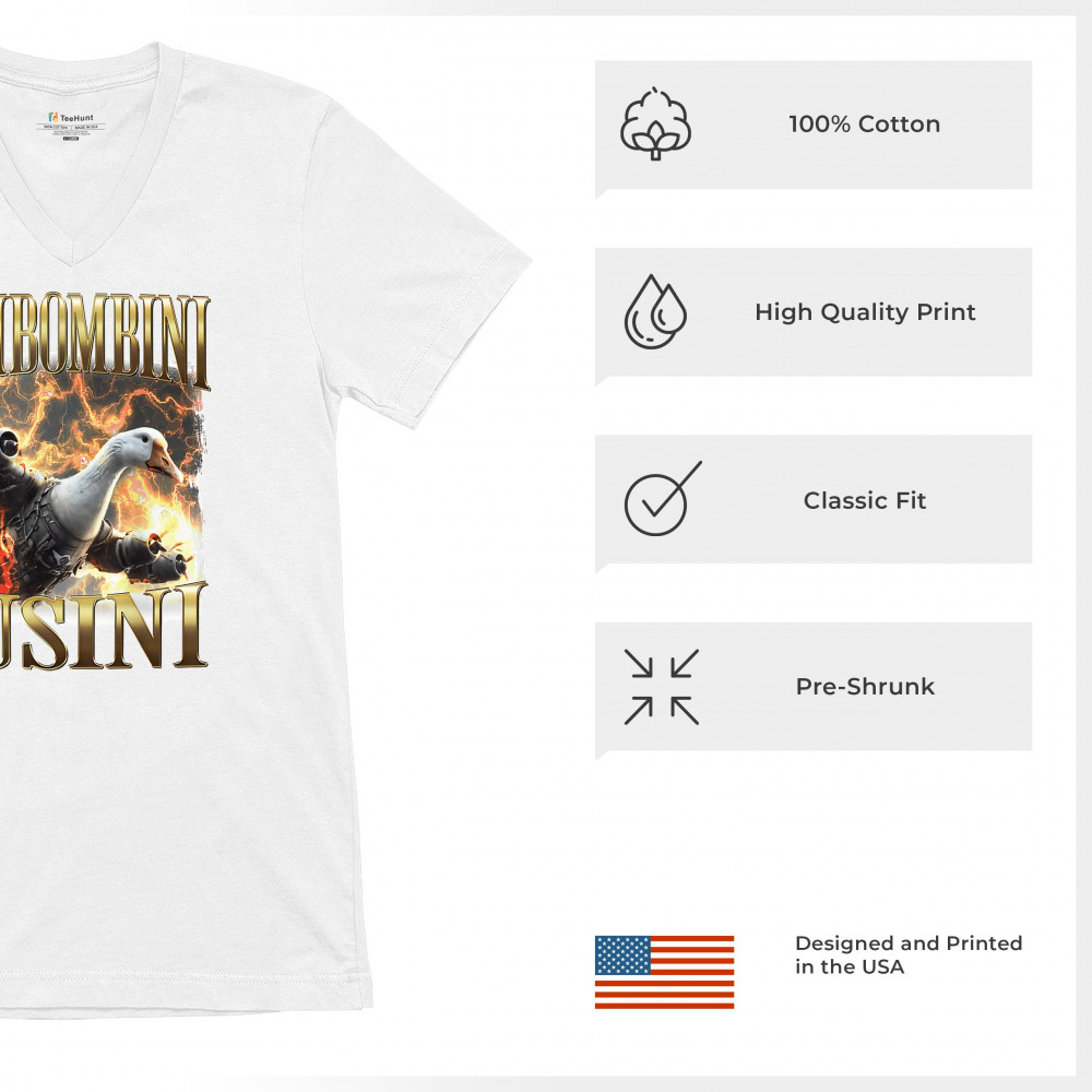 Bombombini Gusini is meme chaos at Mach speed. Featuring a mechanized goose powered by pure Italian Brainrot energy, this design blends cursed-core humor, Gen Z absurdity, ironic fashion, and weirdcore visuals. Perfect for animal meme fans, TikTok-core addicts, and anyone whose humor is completely unhinged.