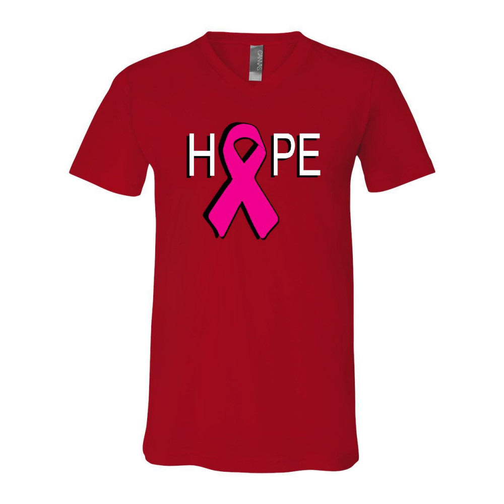 HOPE BREAST CANCER AWARENESS PINK RIBBON v-neck t-shirt tee red