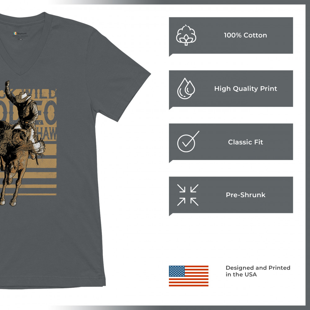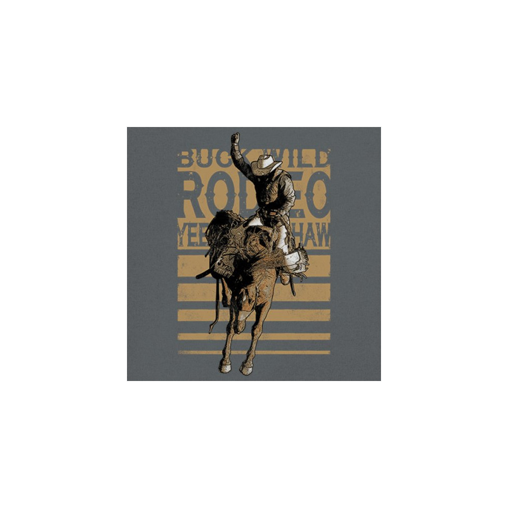 Rodeo bronc rider design with cowboy grit. Western graphic for fans of ranch life, bucking broncos, and rodeo events.