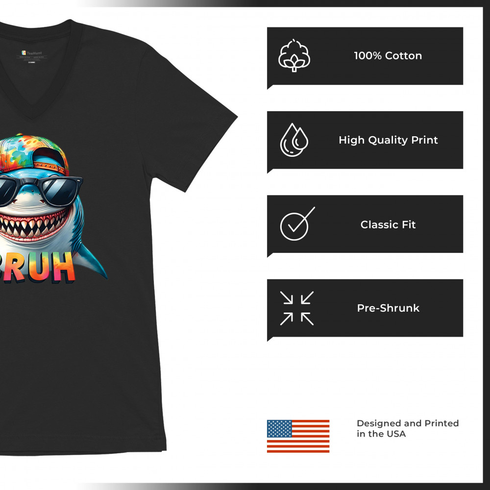 Bruh Shark meme shirt with Gen Z humor, cartoon shark design, summer beach vibes, Sigma Aura, and Italian Brainrot internet humor.