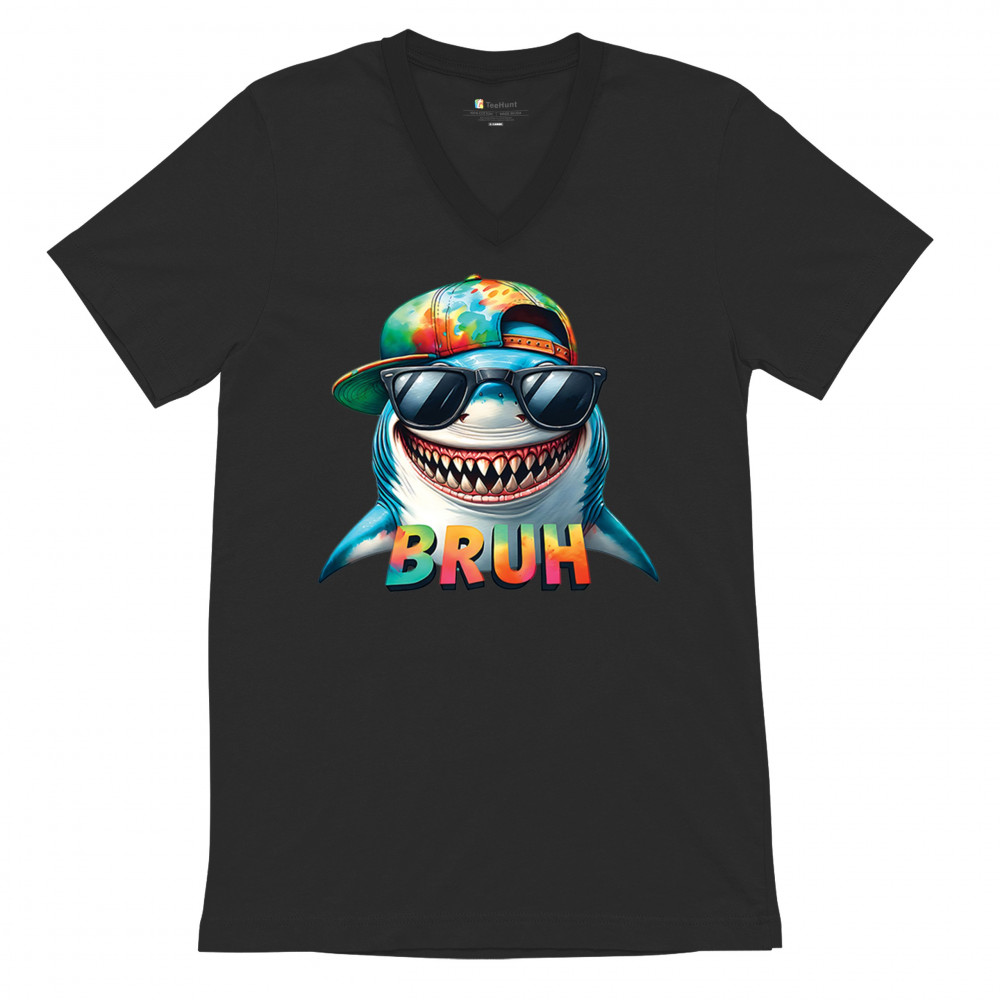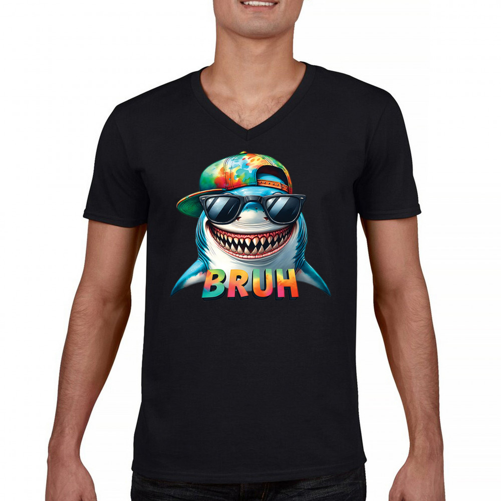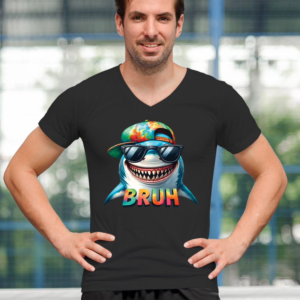 BRUH SHARK men's v-neck t-shirt gen z goofy tralalero tralala skibidi sigma black