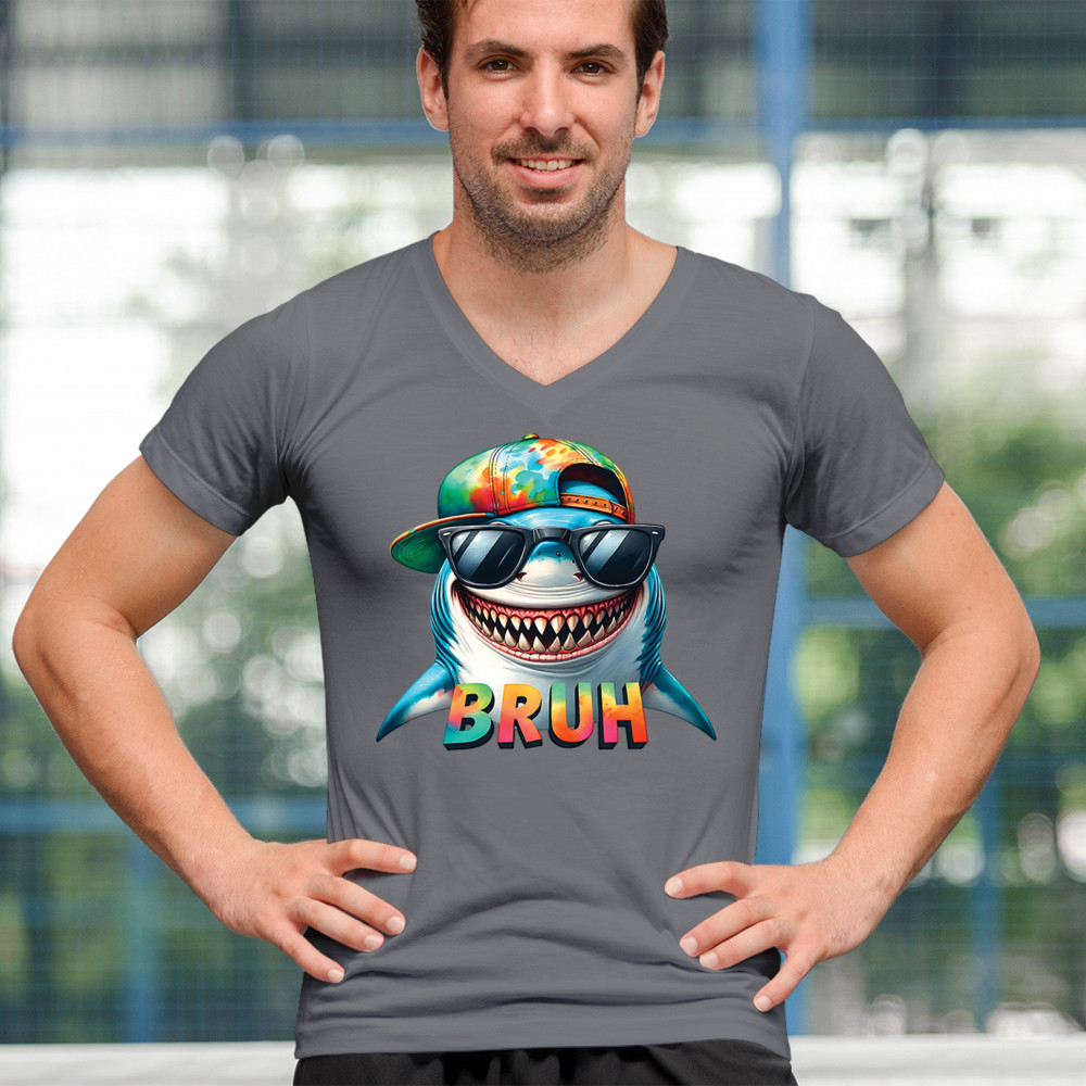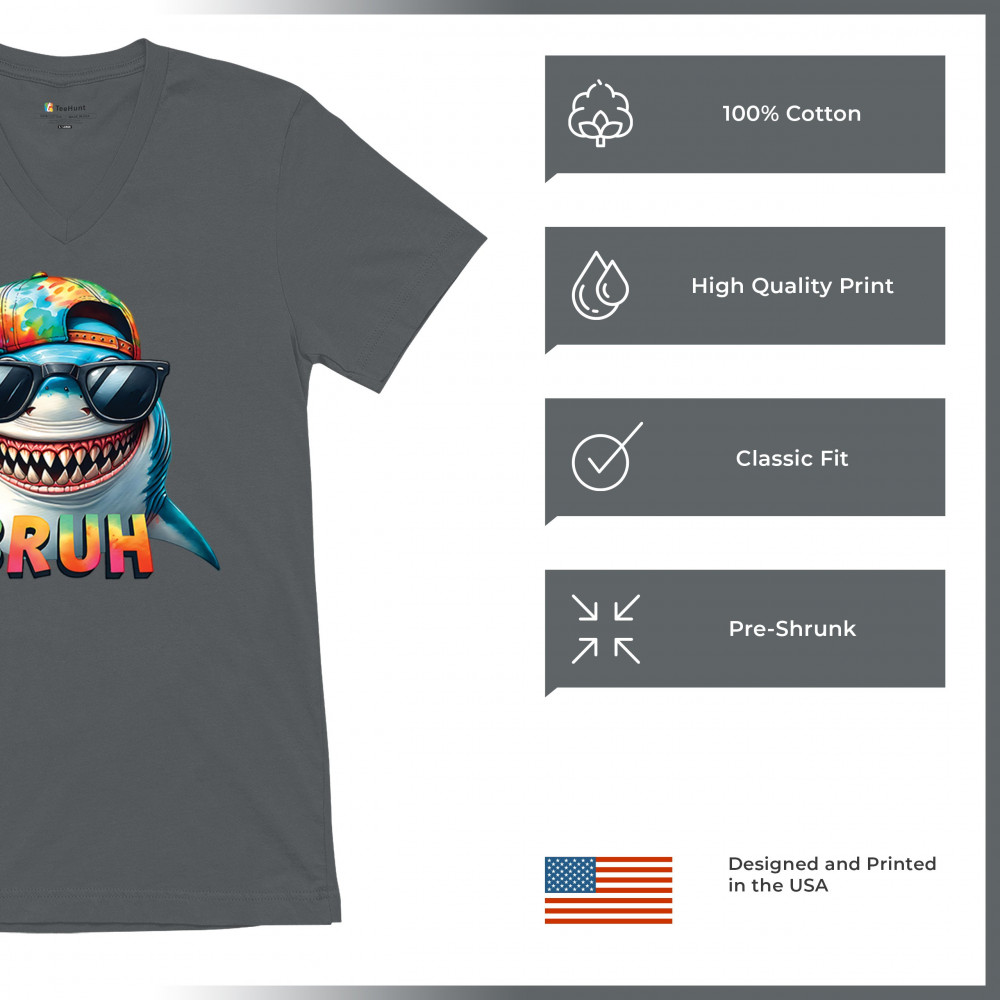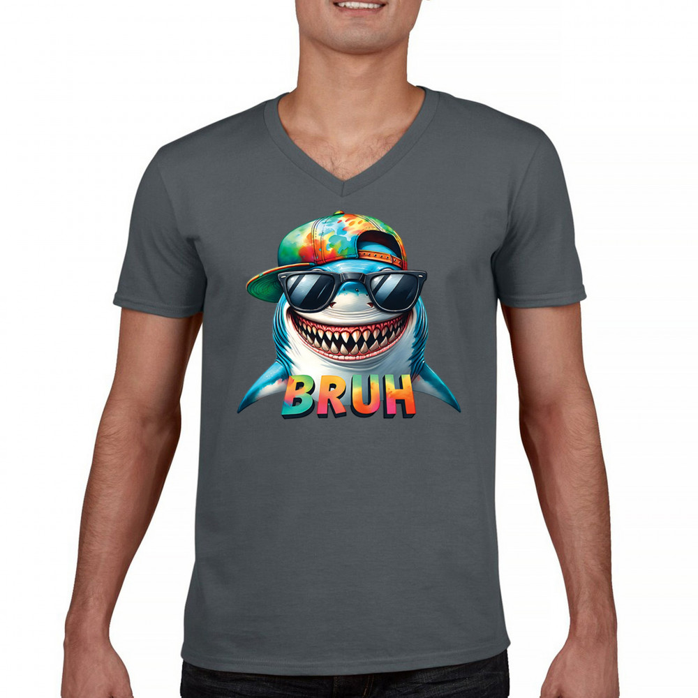 Bruh Shark meme shirt with Gen Z humor, cartoon shark design, summer beach vibes, Sigma Aura, and Italian Brainrot internet humor.