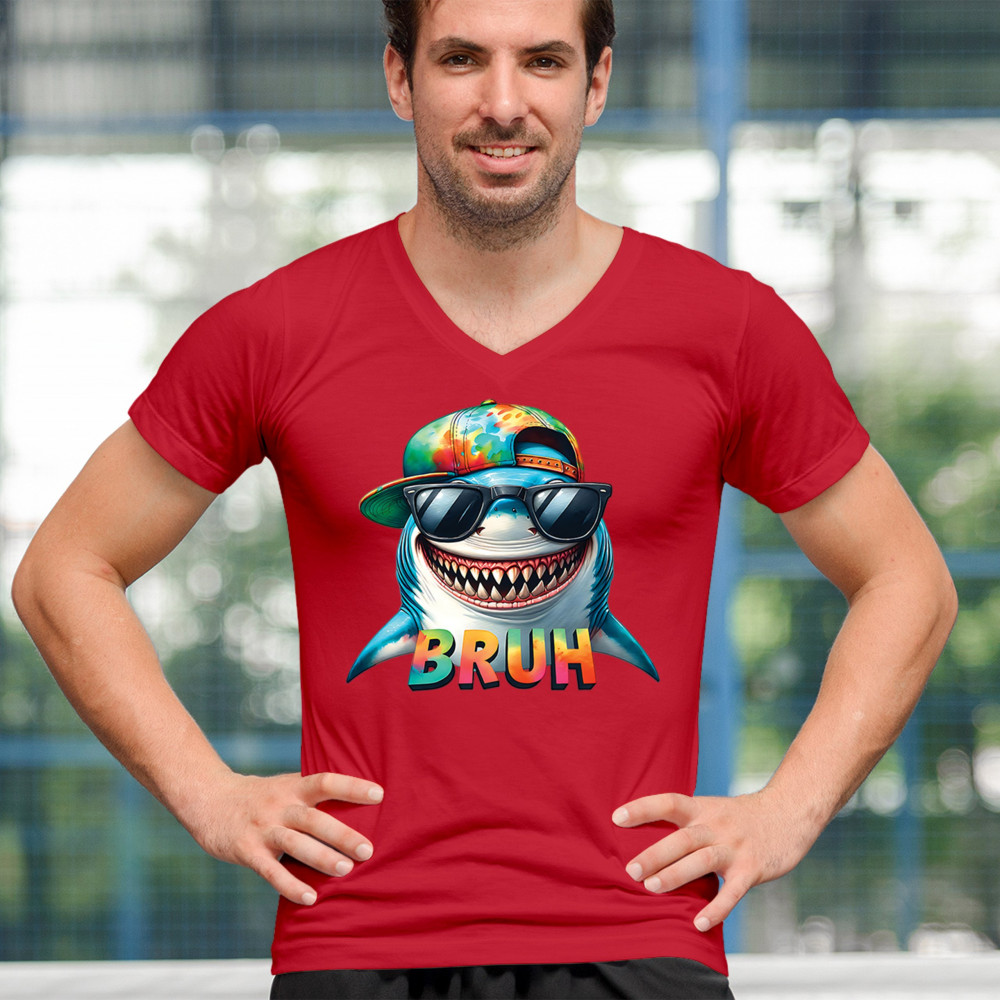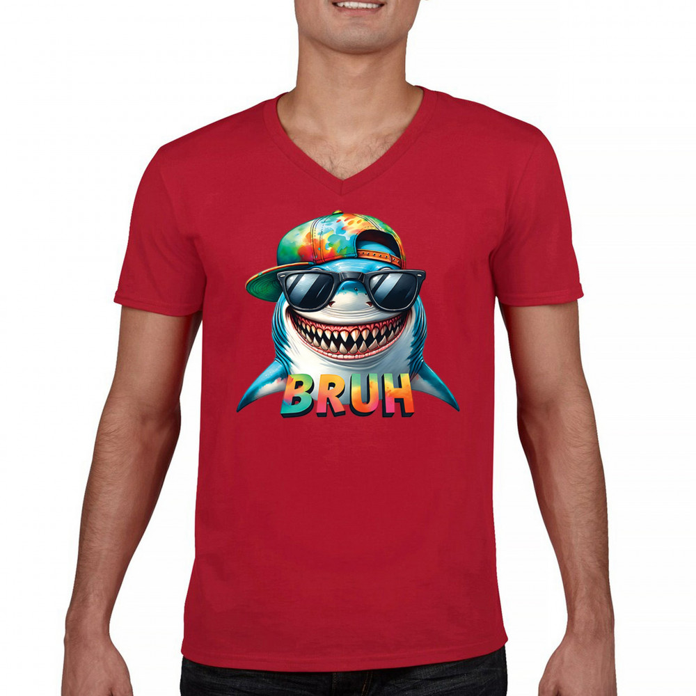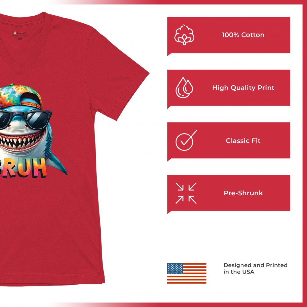 Bruh Shark meme shirt with Gen Z humor, cartoon shark design, summer beach vibes, Sigma Aura, and Italian Brainrot internet humor.
