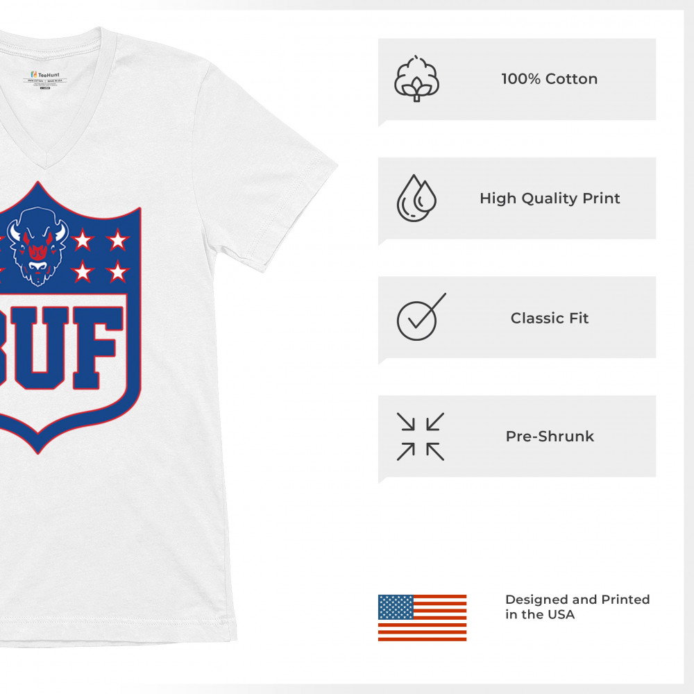 Bold Buffalo bison shield design for game day gear, tailgating, Sunday football, and championship pride in The Queen City.
