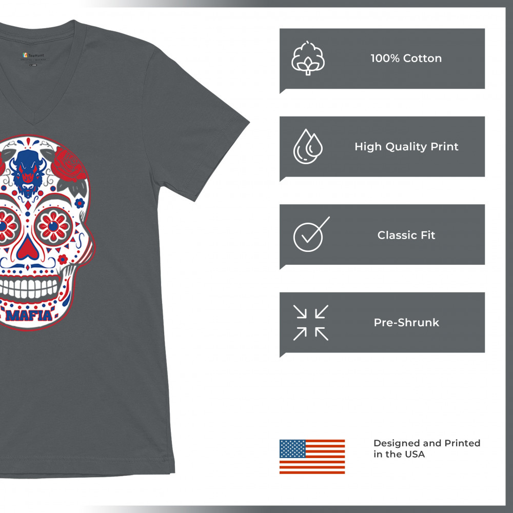 Celebrate Buffalo football with this Sugar Skull design inspired by Dia de los Muertos. Featuring NY Bleed Blue toughness, Northern Grit, and Queen City spirit, it’s made for tailgate parties, playoff energy, and fantasy football rivalries. A bold calavera for true Buffalo fans who live Game Day pride.