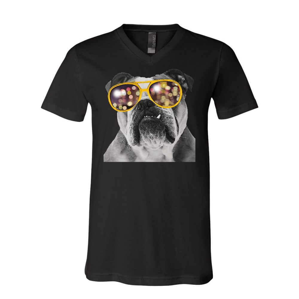 BULLDOG WEARING GLASSES v-neck t-shirt cute dog swag pet lovers urban tee black