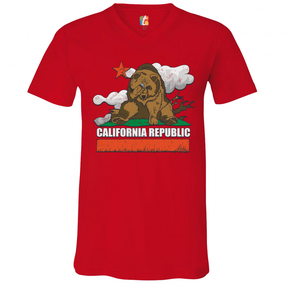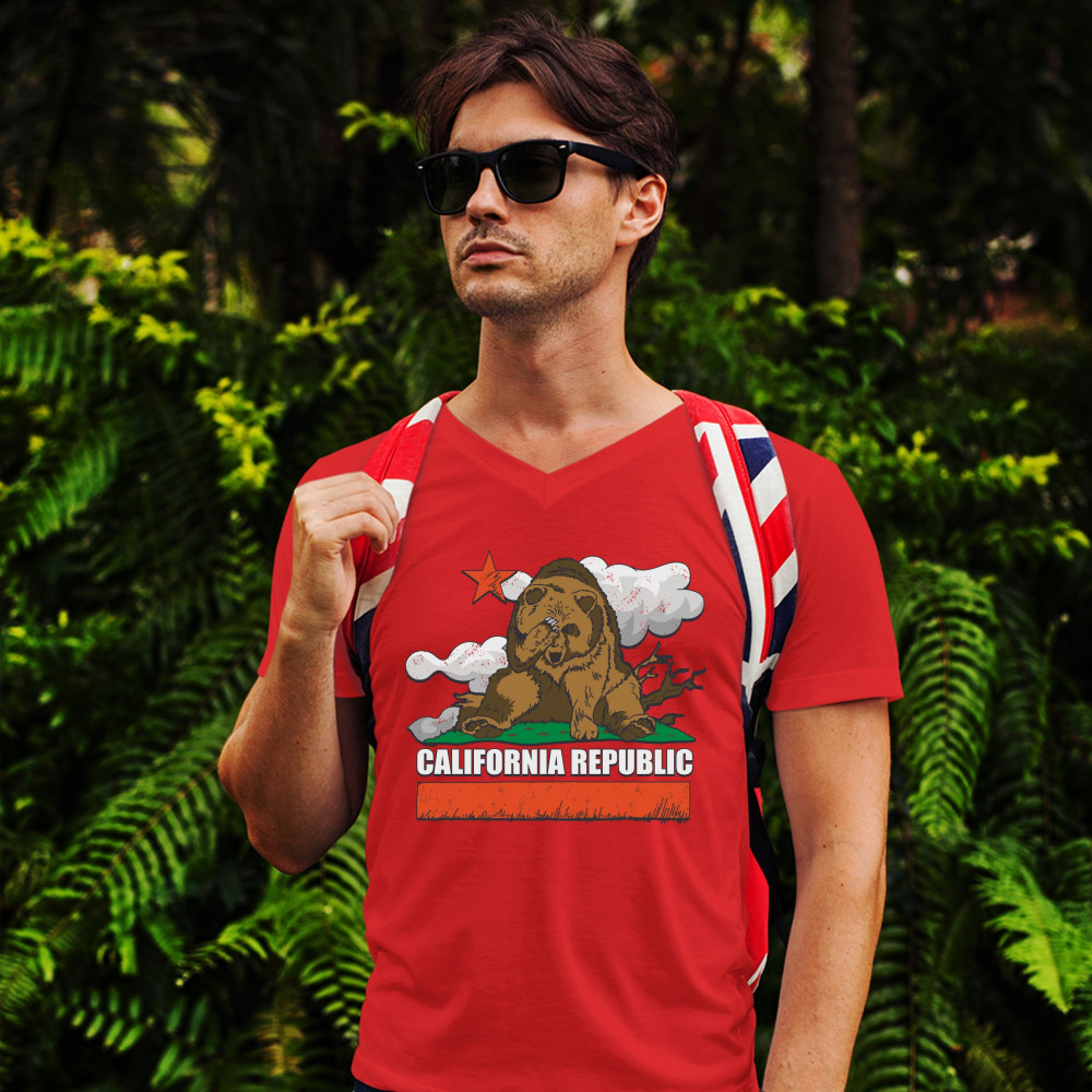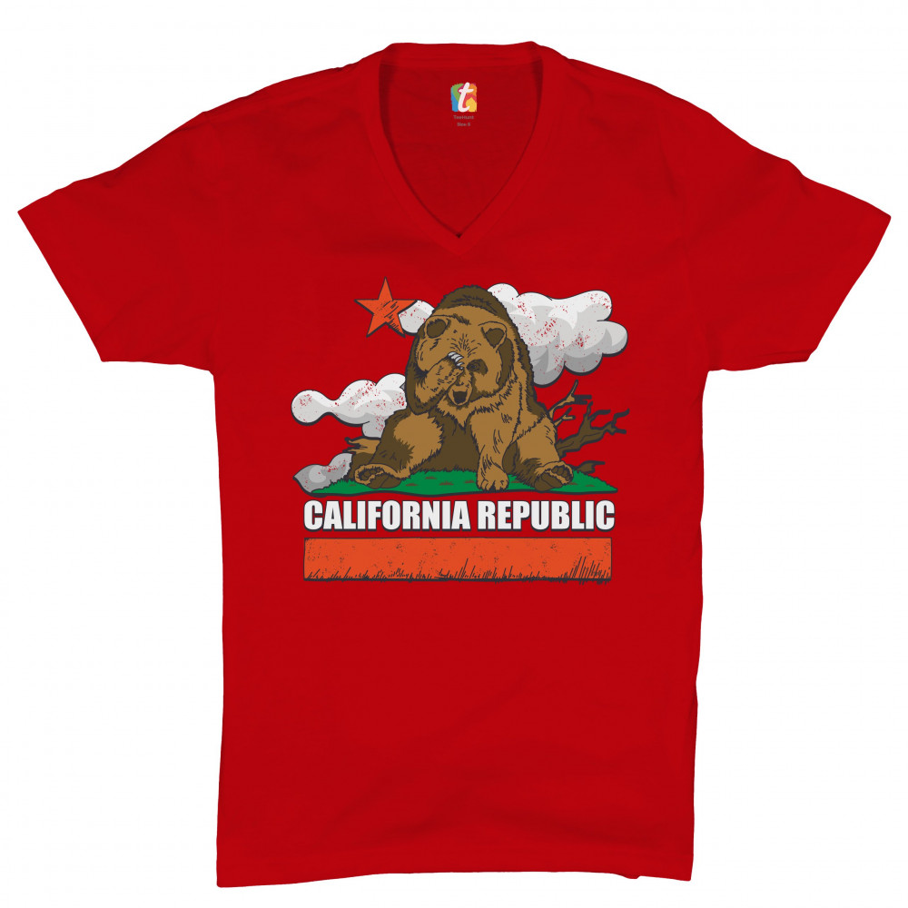 CALIFORNIA BEAR FACEPALM v-neck t-shirt the great california exodus tee red