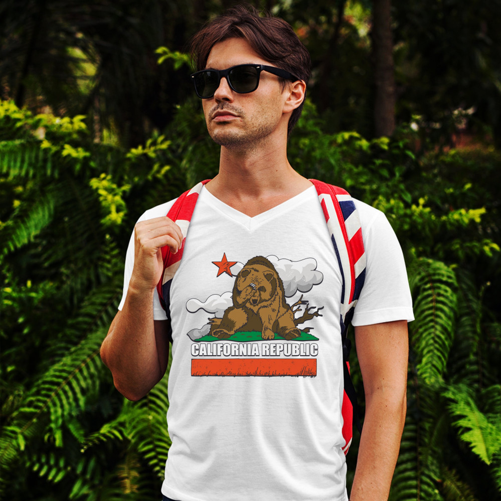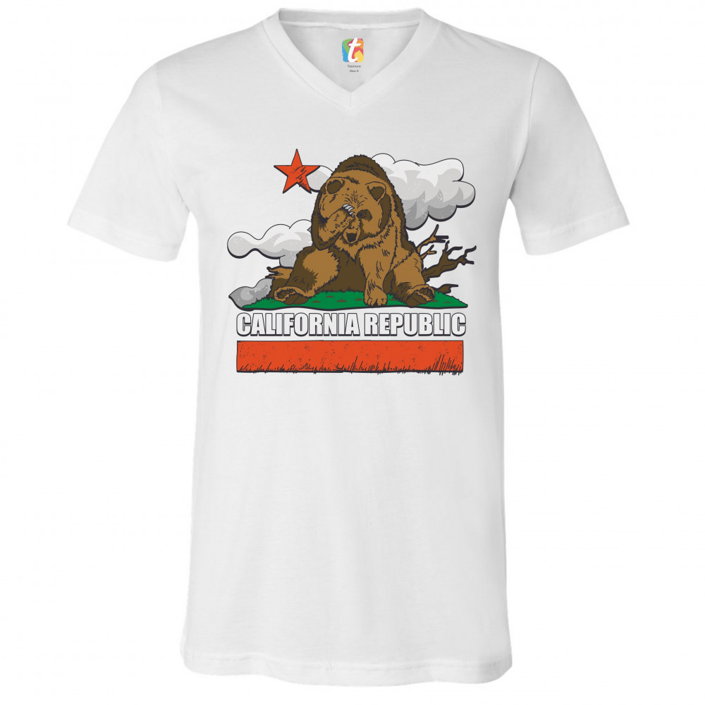 CALIFORNIA BEAR FACEPALM v-neck t-shirt the great california exodus tee white