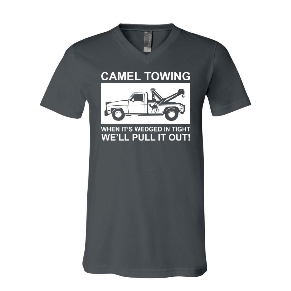 CAMEL TOWING PULL IT OUT v-neck t-shirt funny naughty adult camel toe tee charcoal